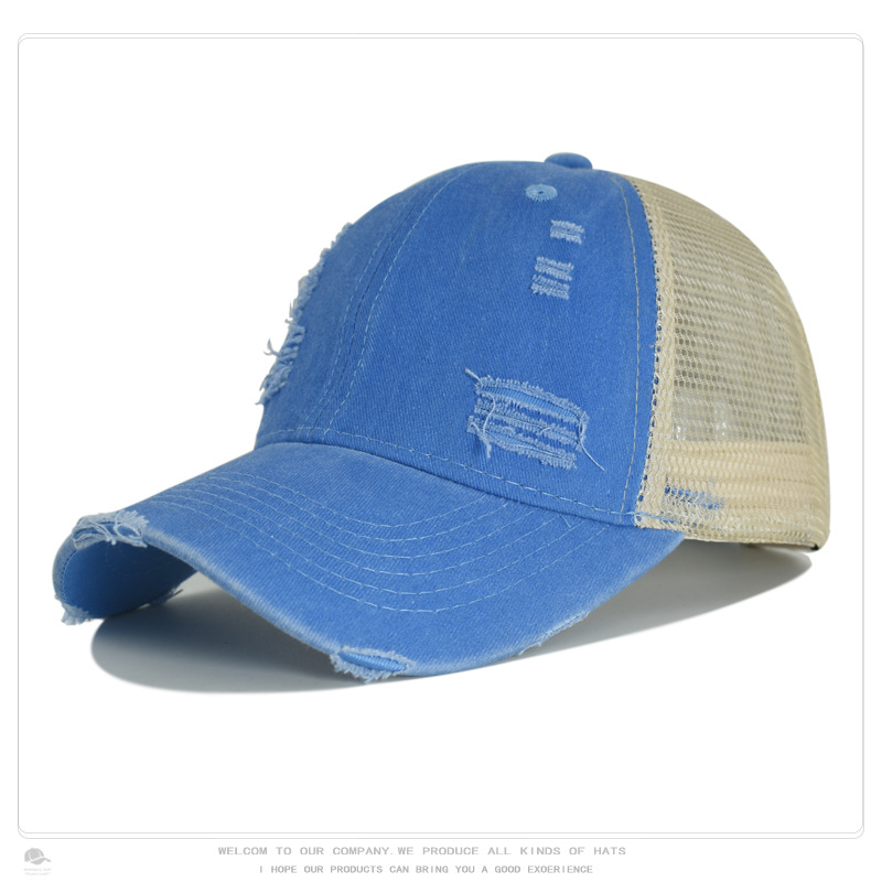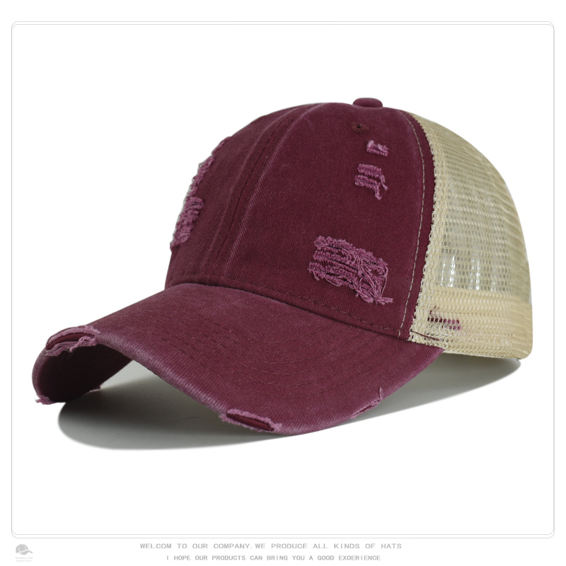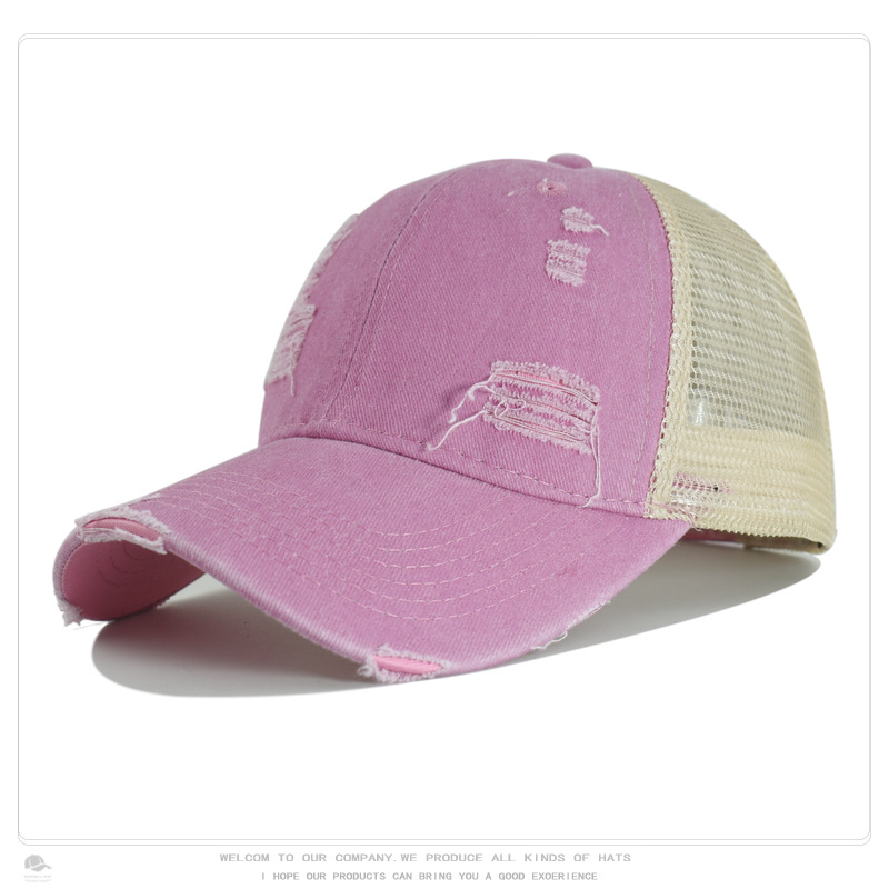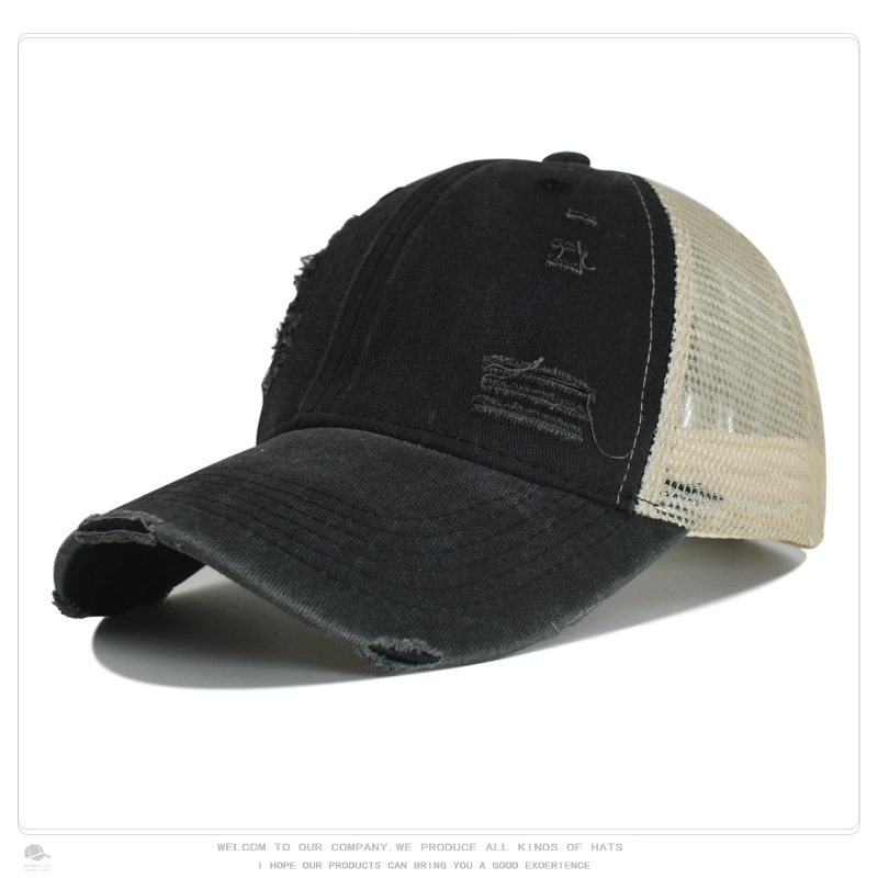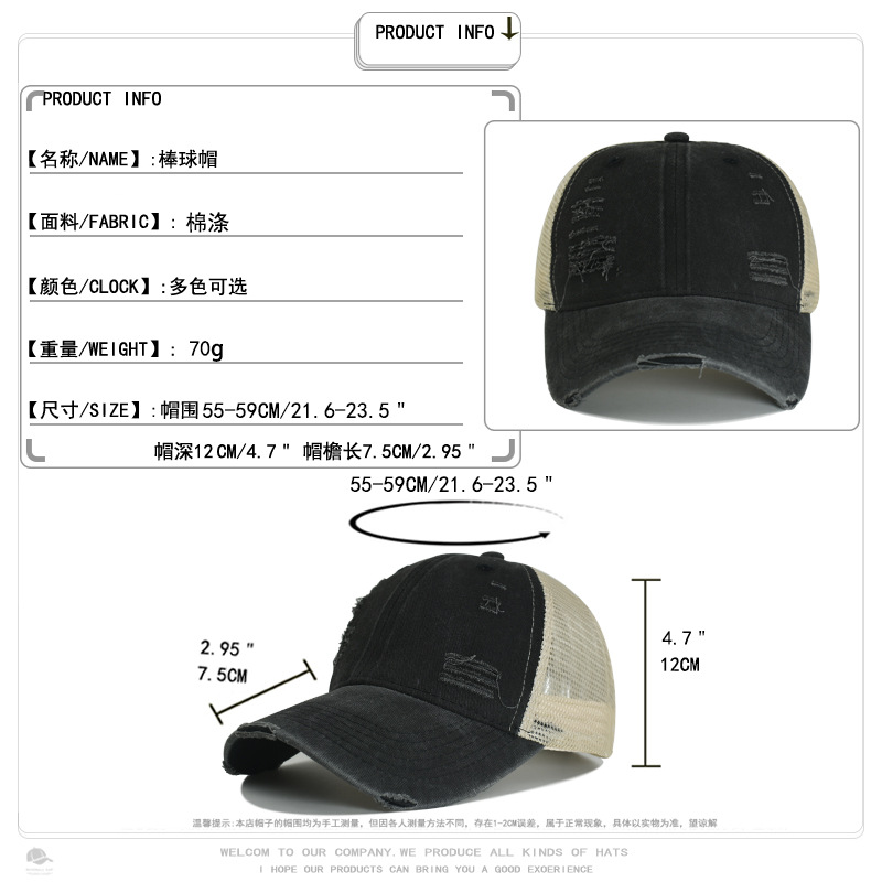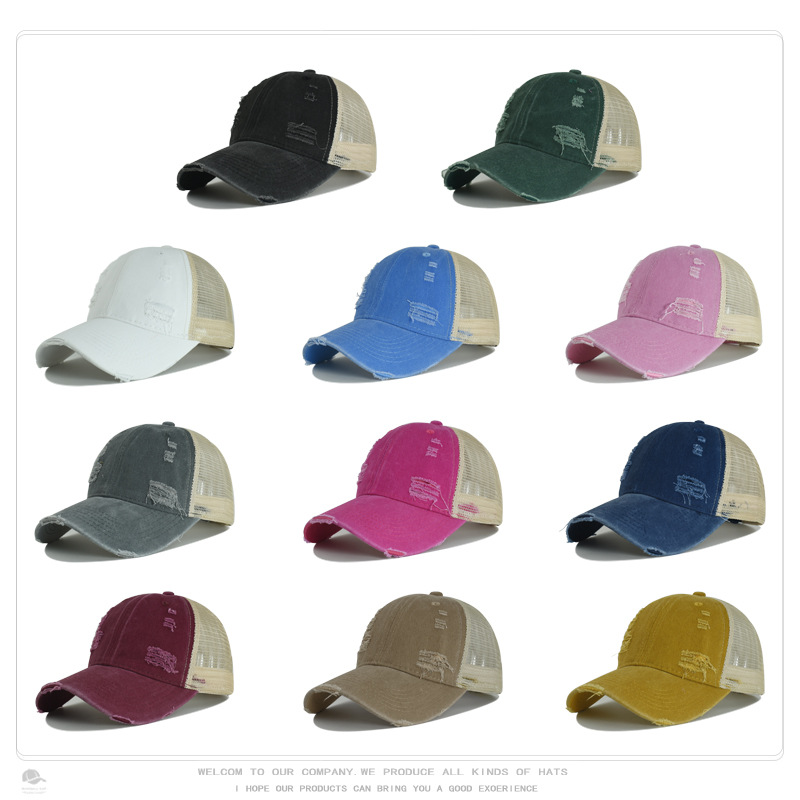 跨境棉11色水洗做旧破洞棒球帽户外百搭夏季光板网帽纯色鸭舌帽