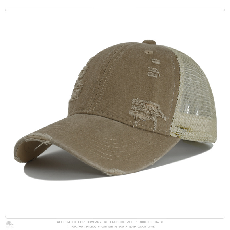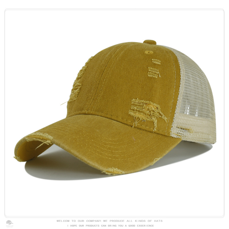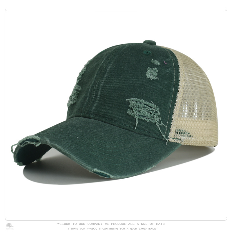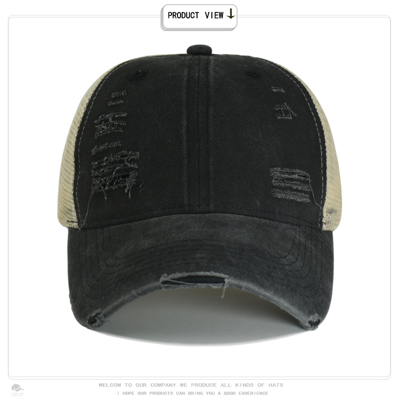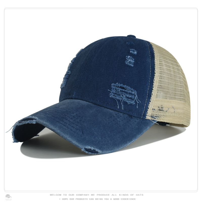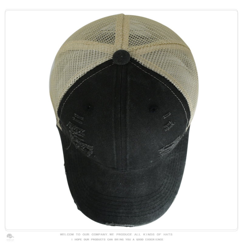 跨境棉11色水洗做旧破洞棒球帽户外百搭夏季光板网帽纯色鸭舌帽