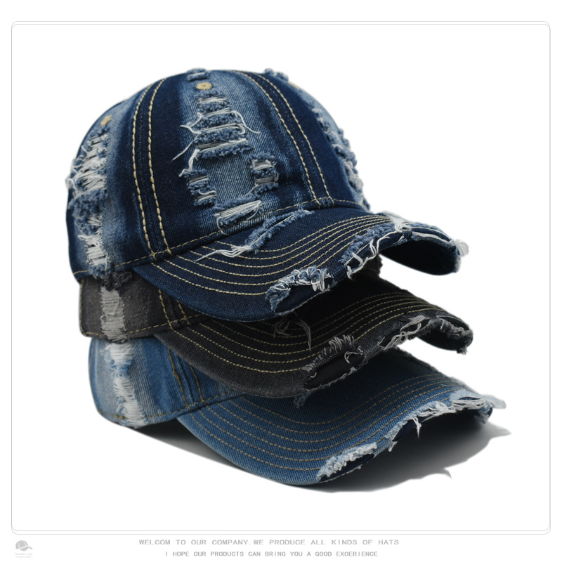 秋季帽子女个性水洗牛仔破洞鸭舌帽户外男出行日系防晒遮阳棒球帽