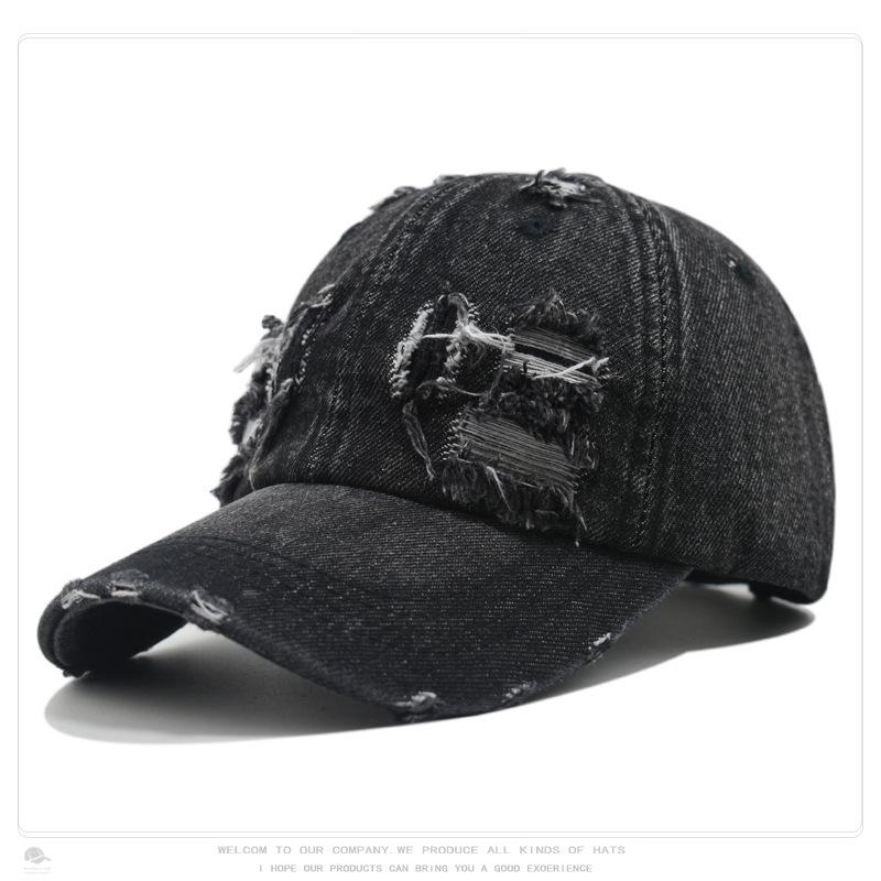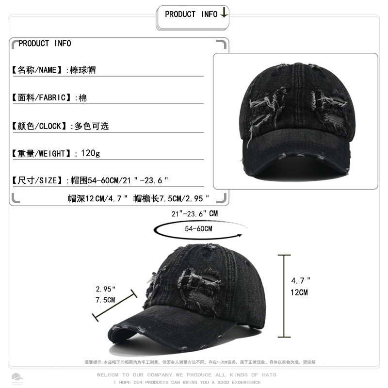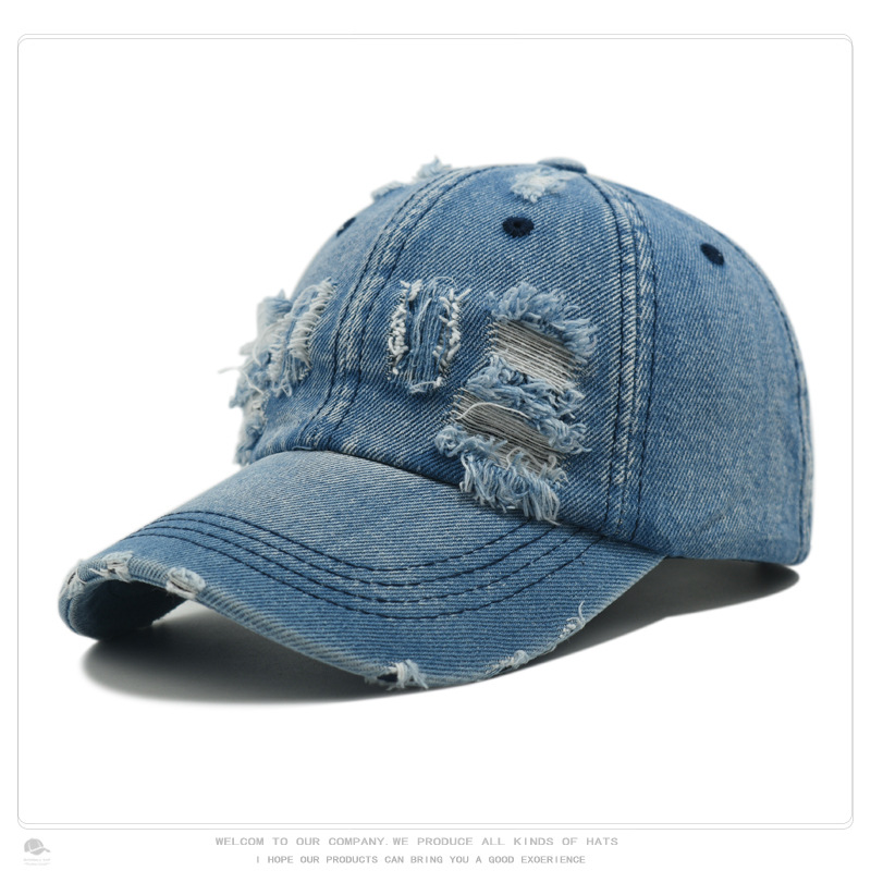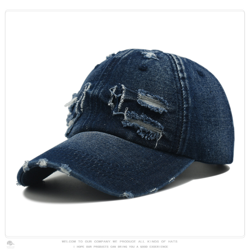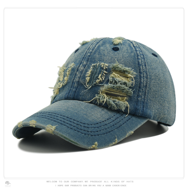 棒球帽女韩版时尚复古水洗牛仔破洞鸭舌帽男户外运动防晒遮阳帽子