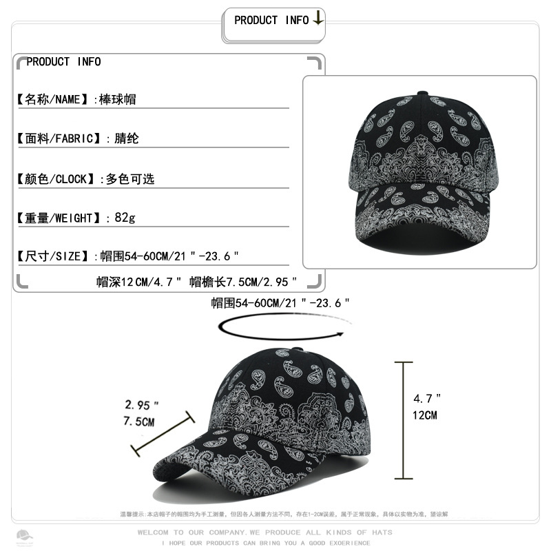 跨境帽子女欧美时尚复古腰果花棒球帽男街头潮人嘻哈遮阳鸭舌帽