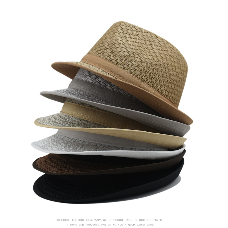 新款夏季礼帽男透气网眼遮阳帽时尚英伦爵士帽户外沙滩防晒帽子女