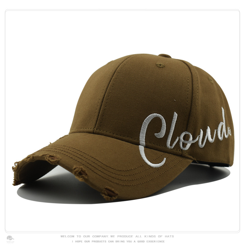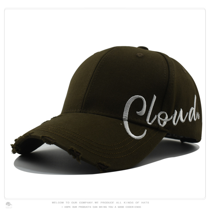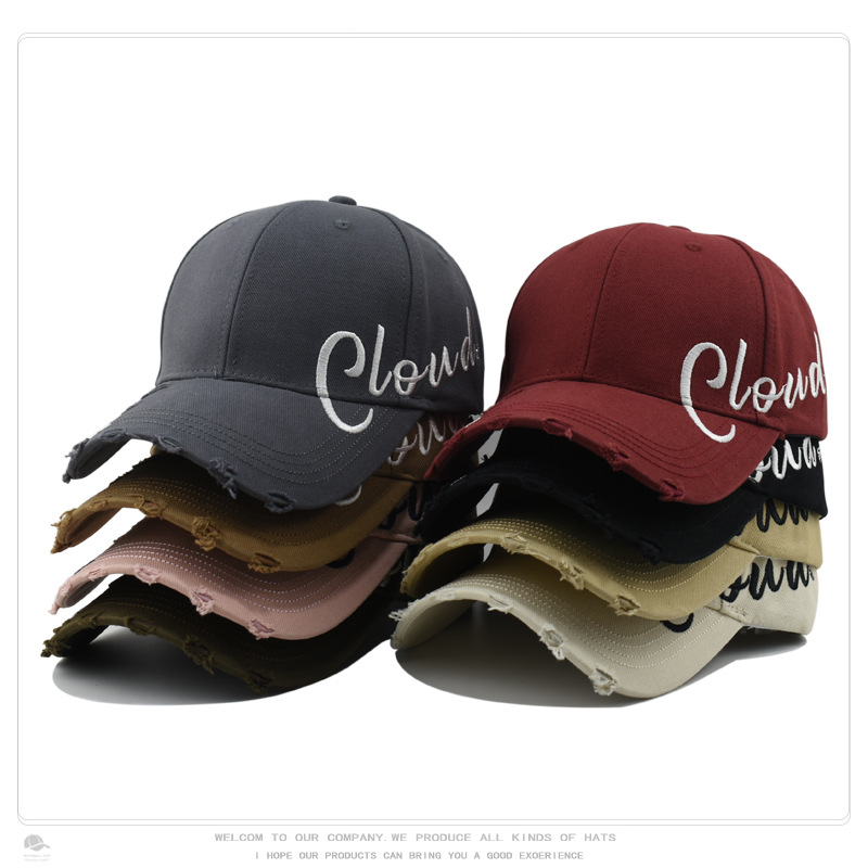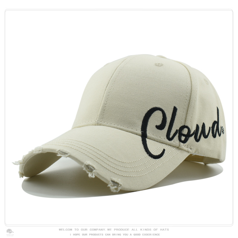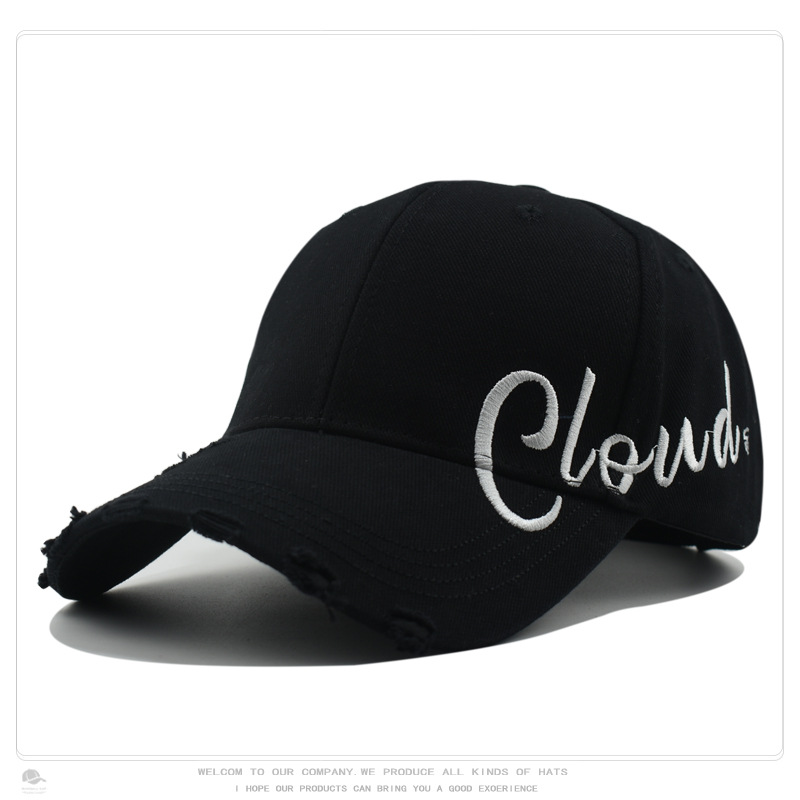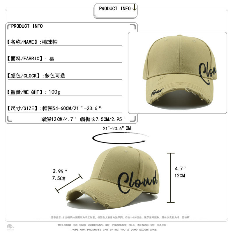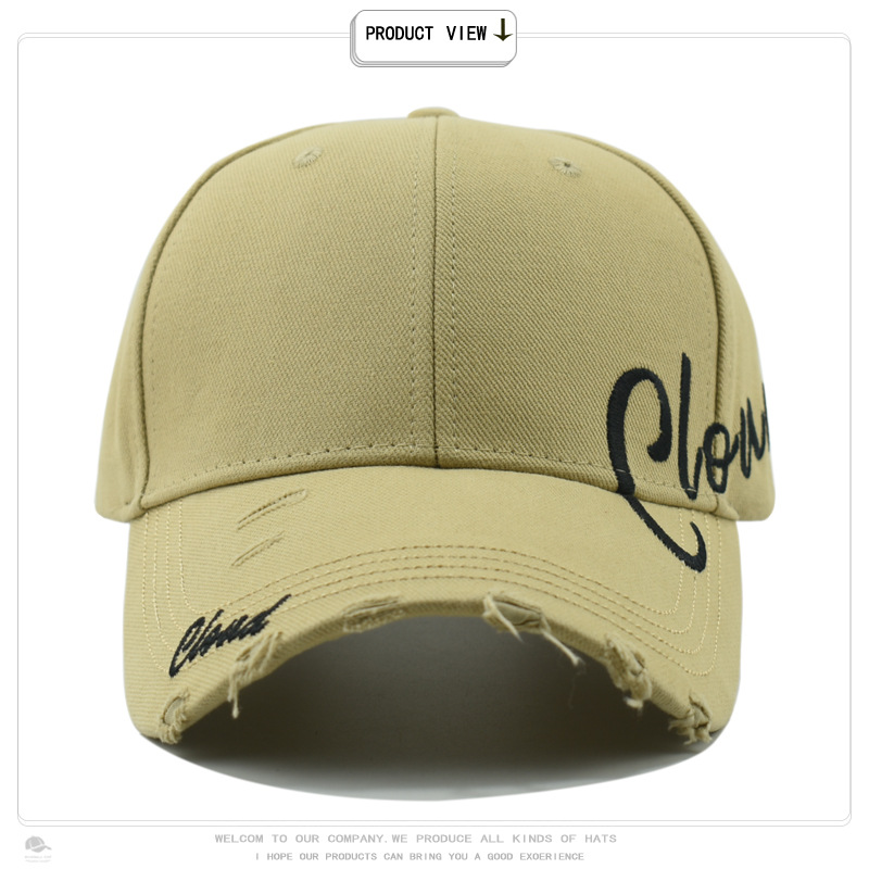 新款帽子女韩版硬顶破洞字母刺绣棒球帽街头百搭显脸小遮阳鸭舌帽