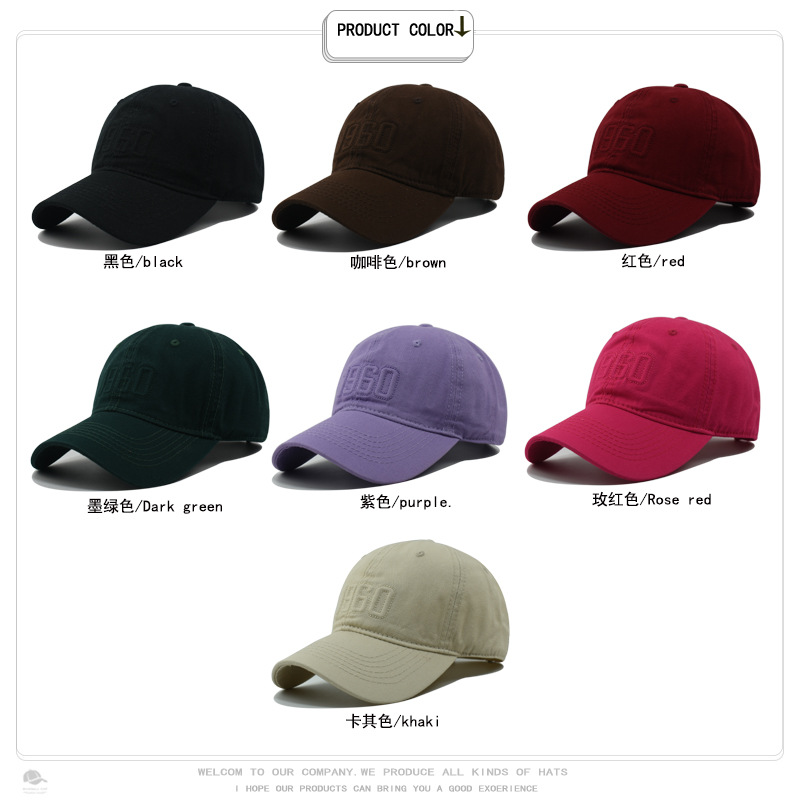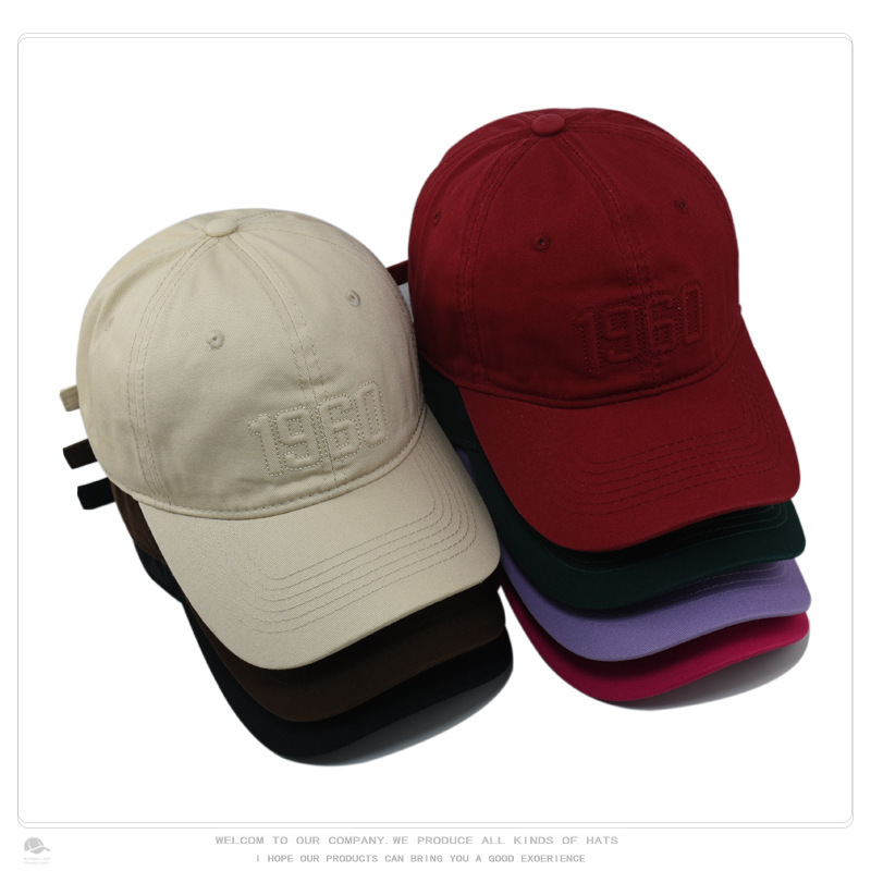 帽子男新款弯檐软顶1960刺绣棒球帽女时尚显脸小情侣学生鸭舌帽