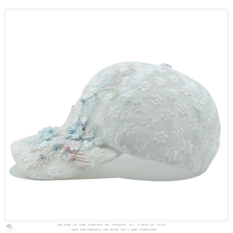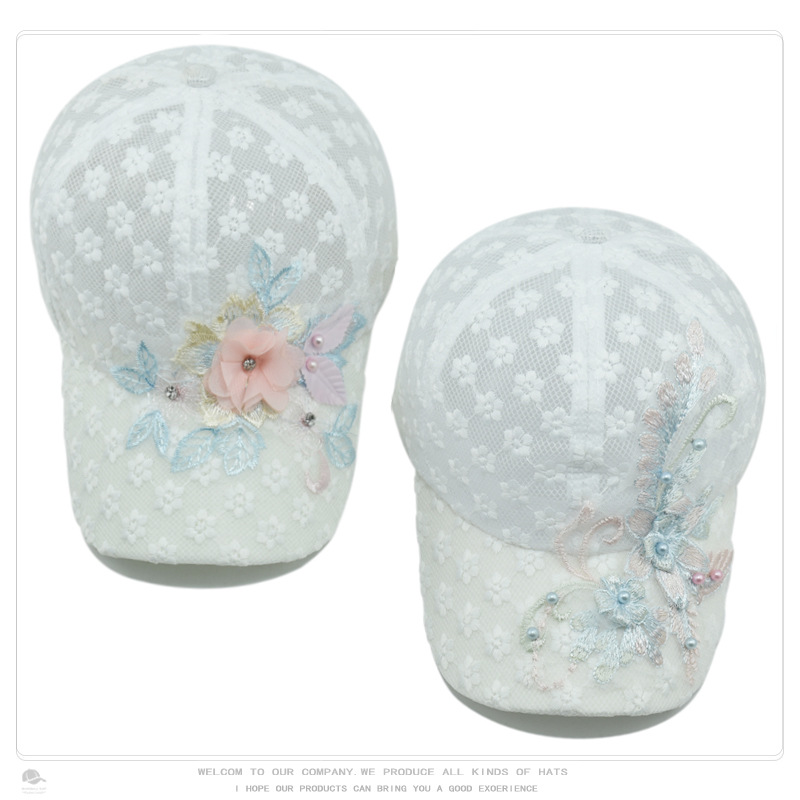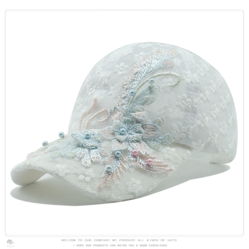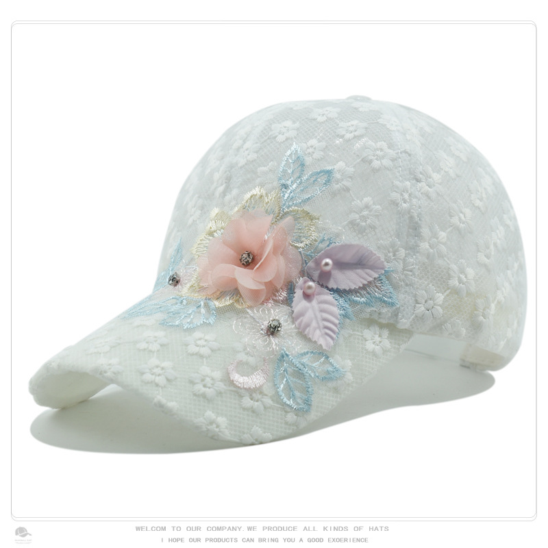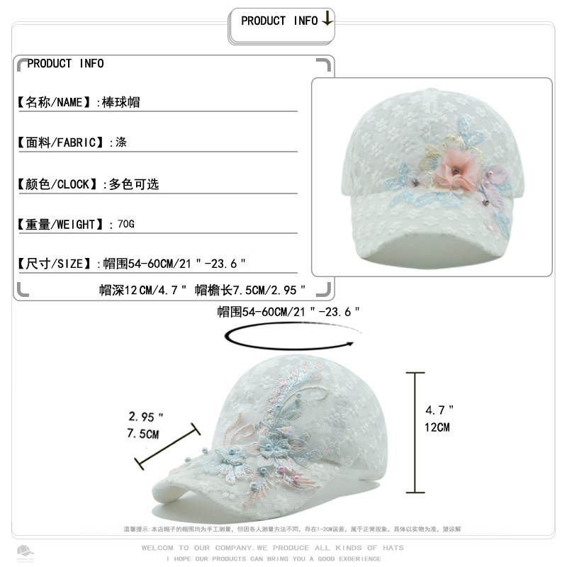 夏季薄款蕾丝鸭舌帽女刺绣花朵网眼透气棒球帽韩版潮防晒遮阳帽子