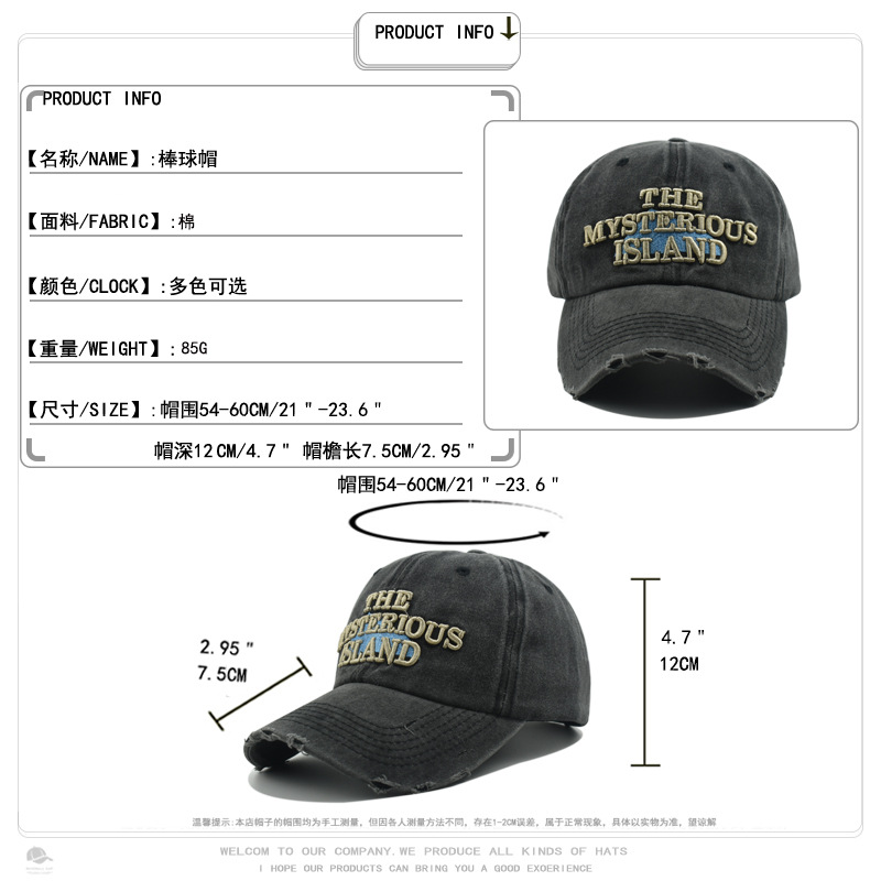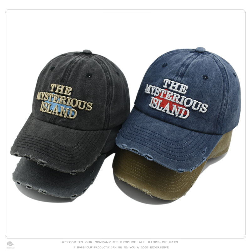 帽子女美式水洗破洞字母刺绣棒球韩版街头百搭户外遮阳防晒鸭舌帽