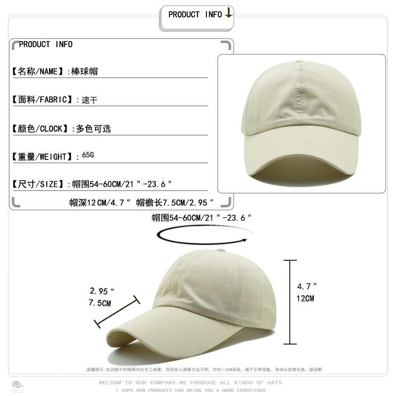 夏天遮阳帽户外韩版鸭舌帽简约净色街头风外贸速干棒球帽短沿帽子