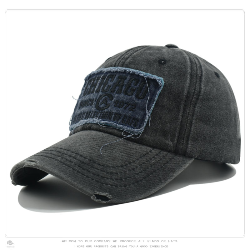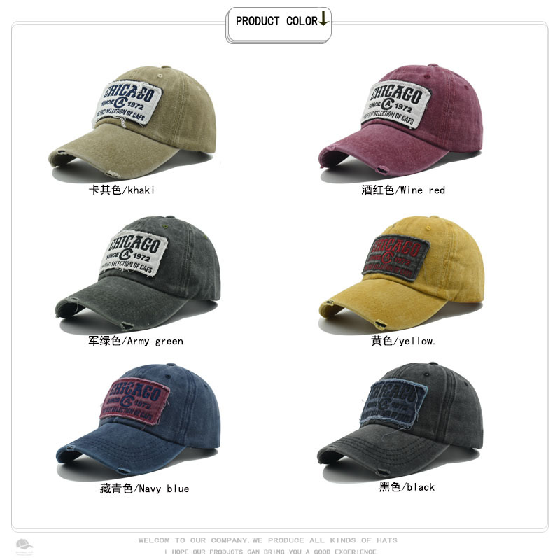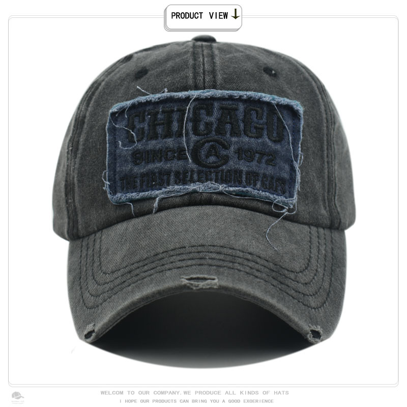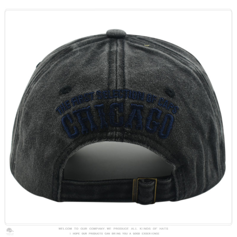 跨境帽子男水洗做旧CHICACO贴布刺绣棒球欧美复古户外遮阳鸭舌帽
