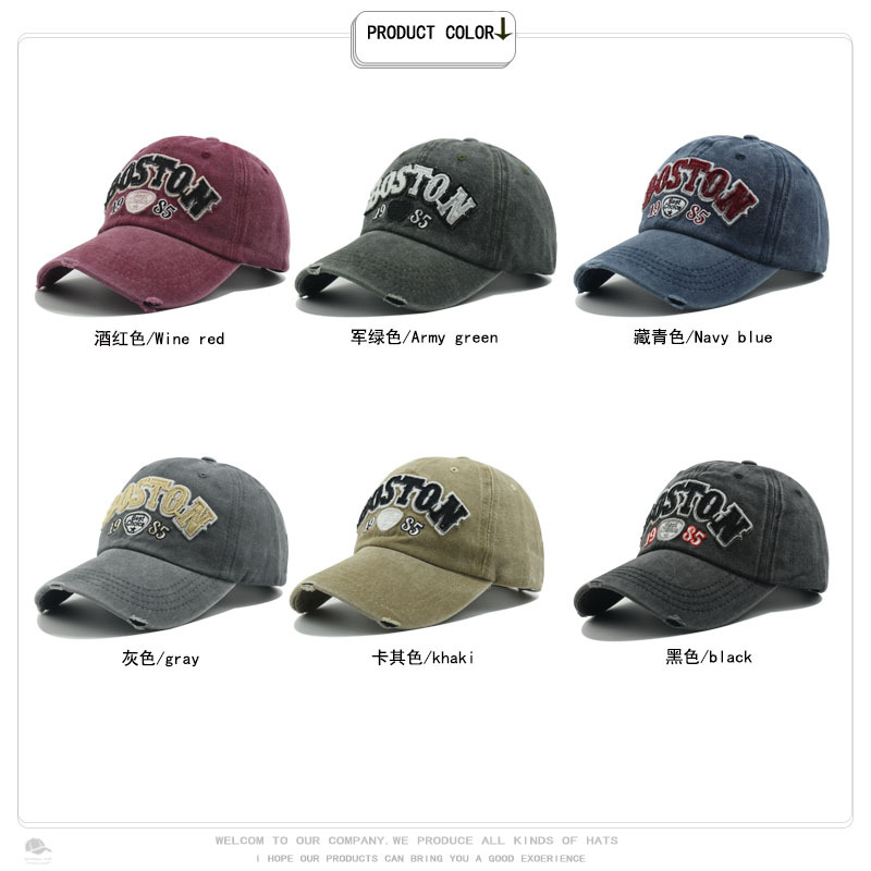 跨境帽子男女士水洗做旧BOSTON刺绣棒球帽春夏复古时尚遮阳鸭舌帽