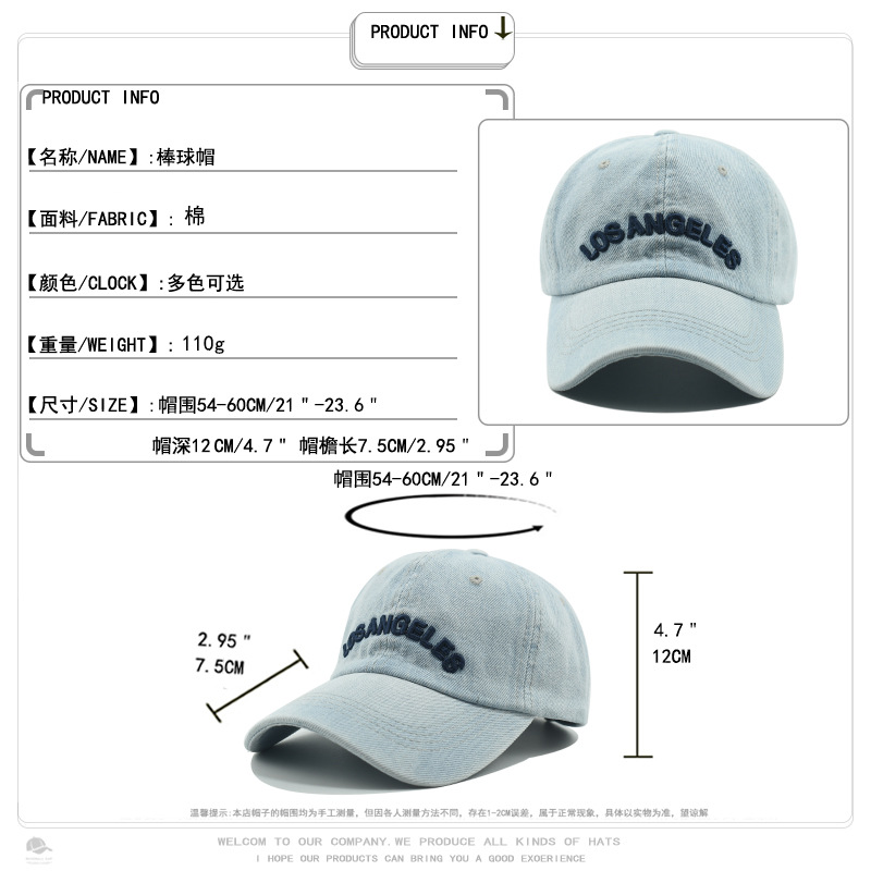 牛仔帽子女韩版时尚字母刺绣棒球帽男日系复古软顶宽檐遮阳鸭舌帽