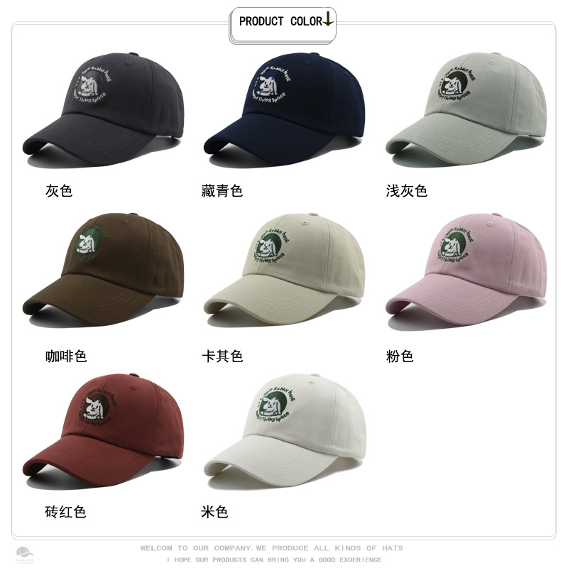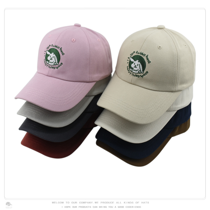帽子女可爱兔子刺绣棒球帽韩版情侣街头百搭软顶春夏季遮阳鸭舌帽