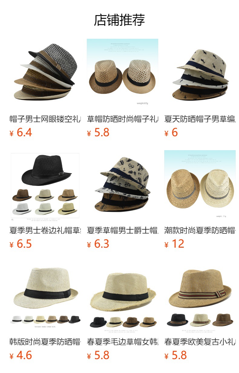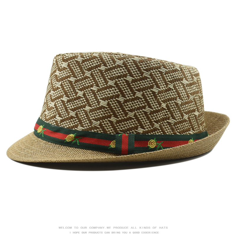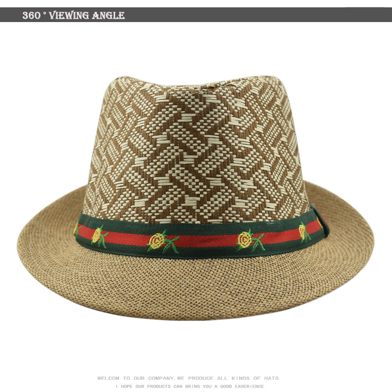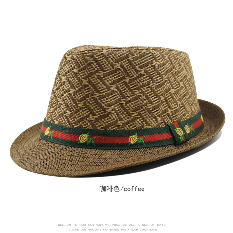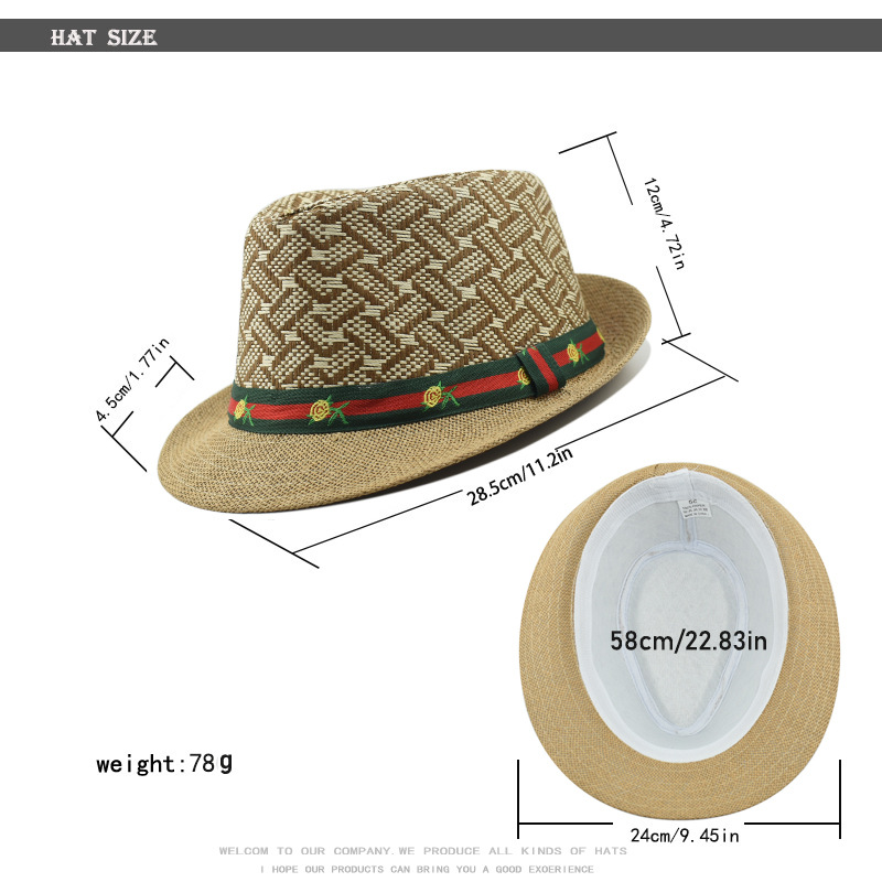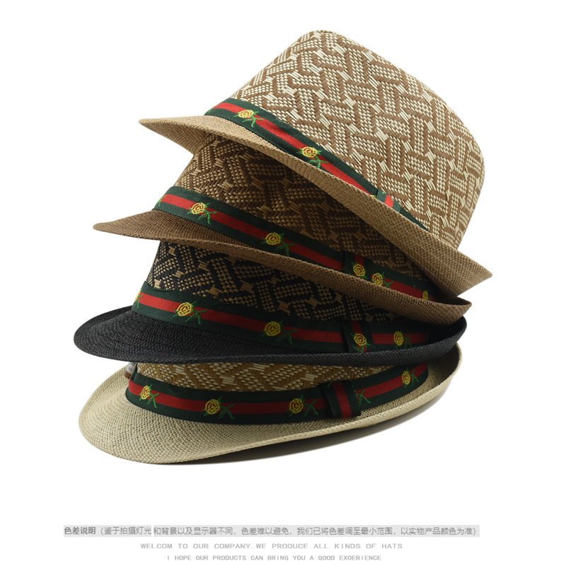 跨境礼帽女春夏季防晒草帽男士时尚英伦复古爵士帽户外出游遮阳帽