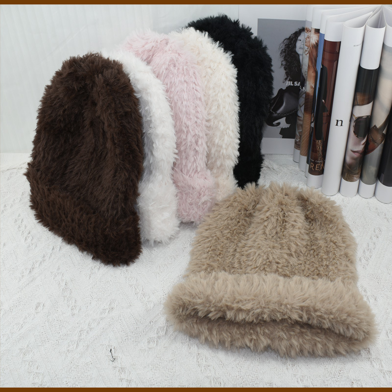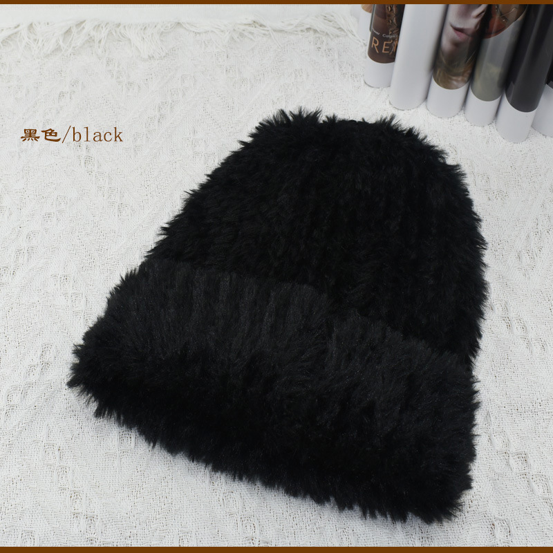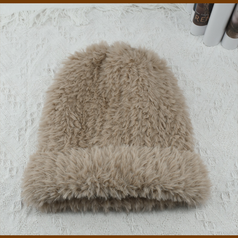 秋冬季毛线帽子女士百搭针织包头显脸小保暖白色毛绒茸冷帽大头围