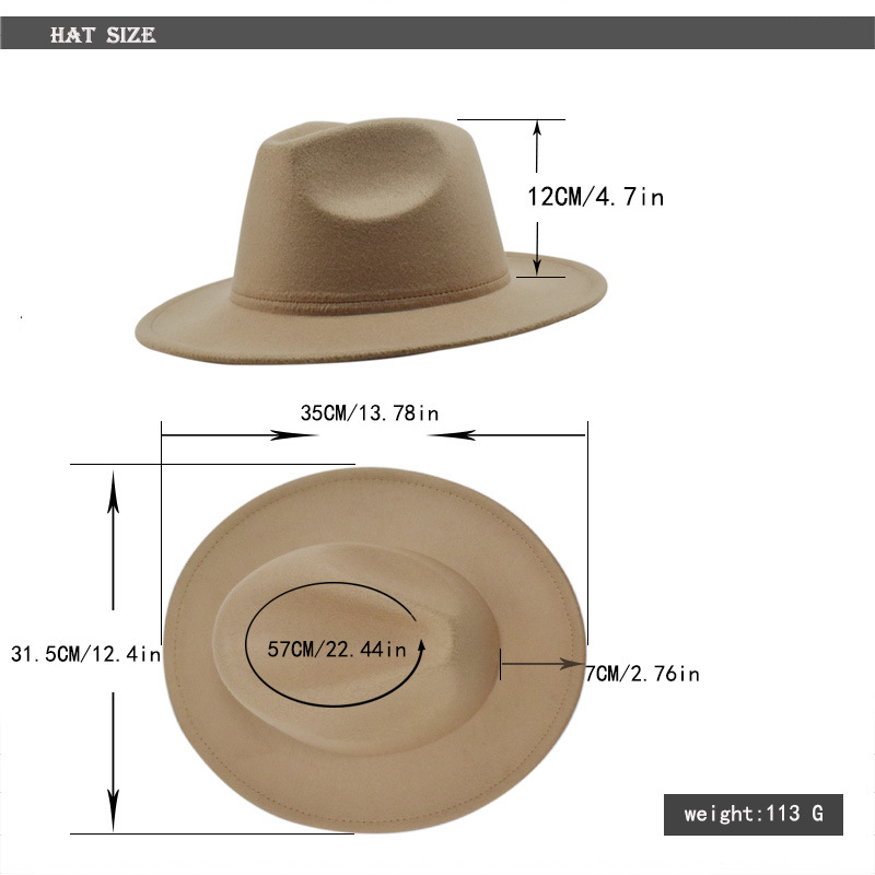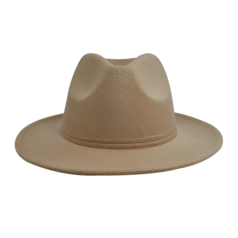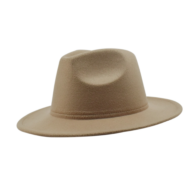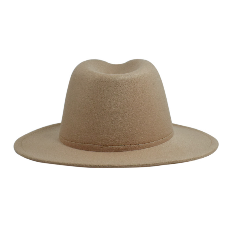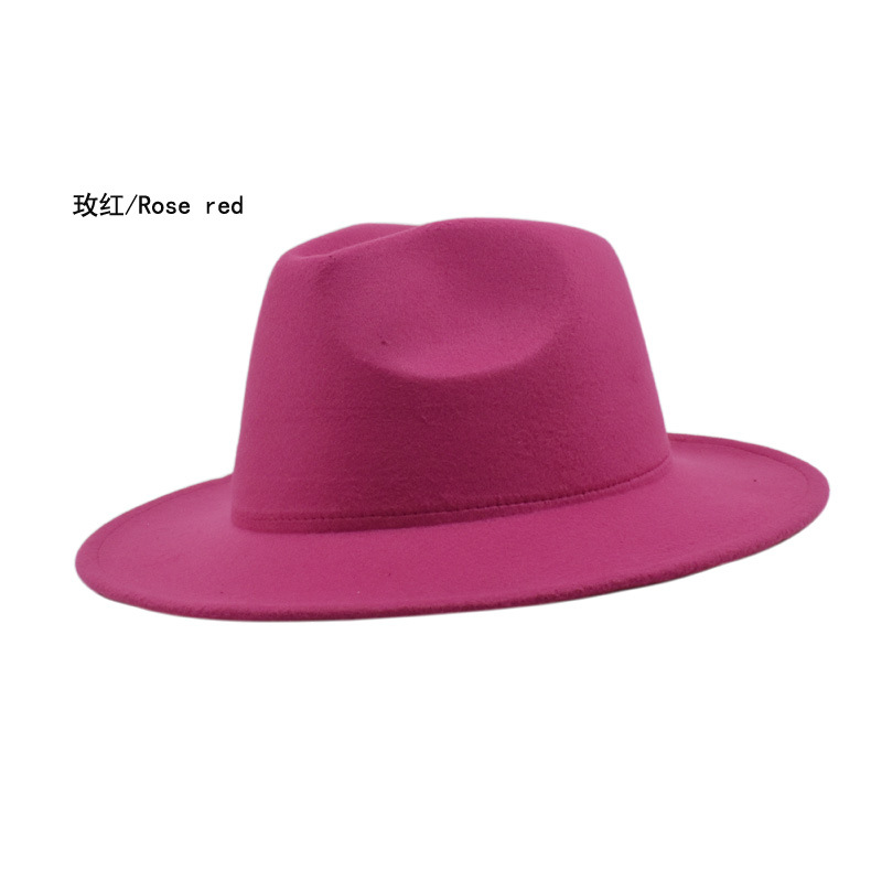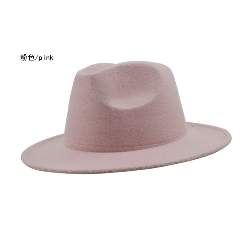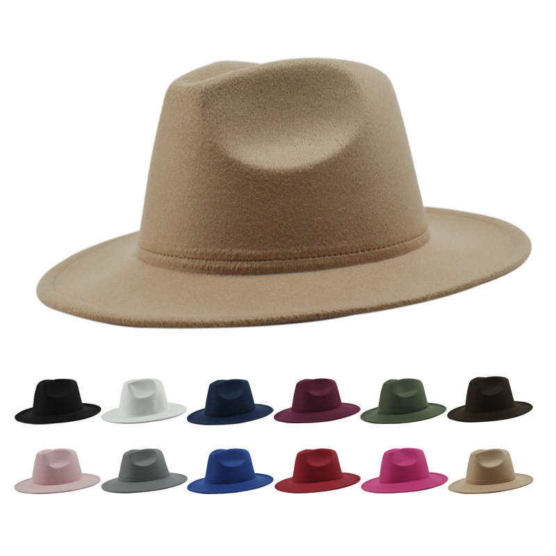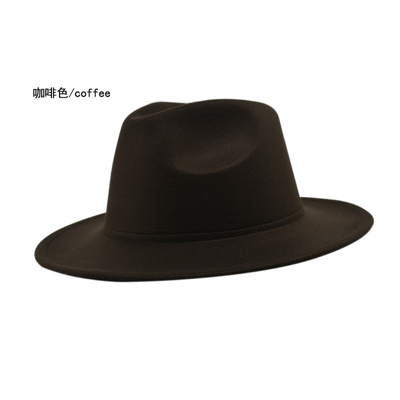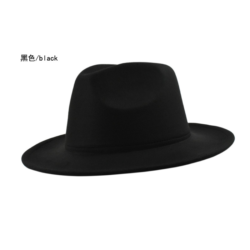 欧美纯色光板毛毡毛呢礼帽男女时尚百搭英伦复古宽檐平檐爵士帽子