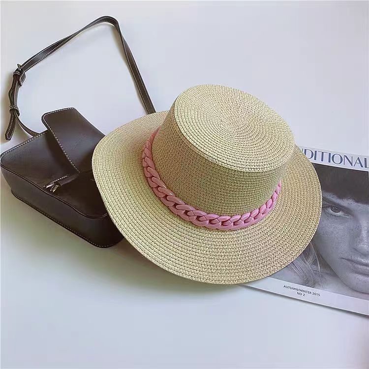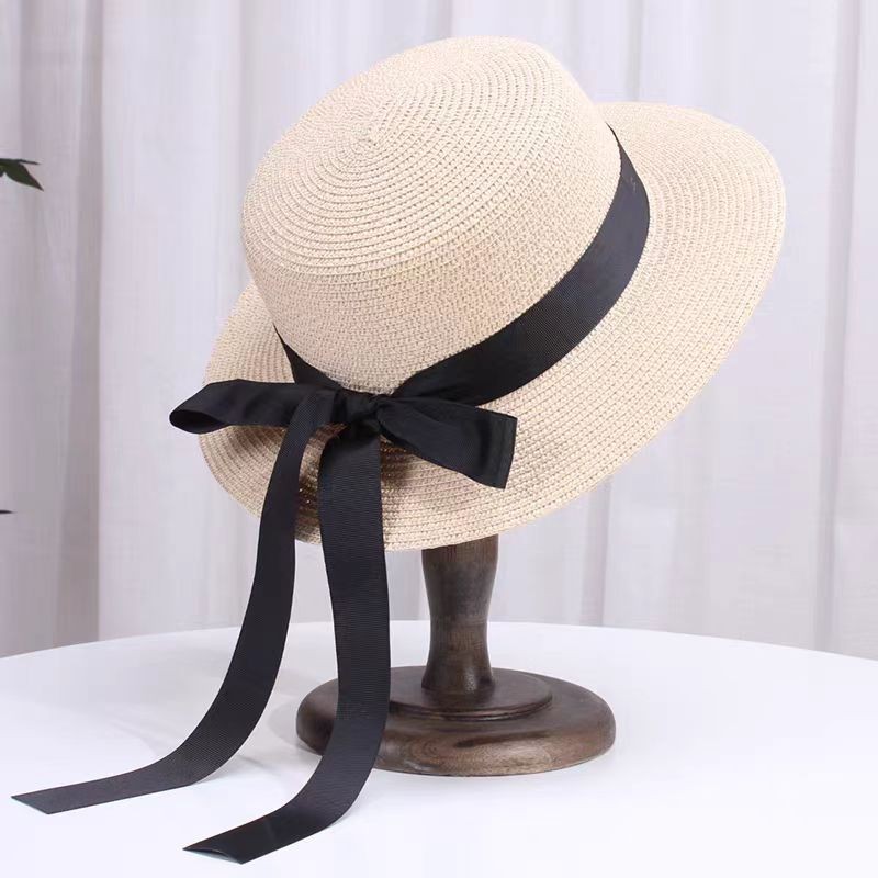 帽胚夏季女草帽平顶帽8cm沙滩草编帽遮阳防晒DIY手工光板帽