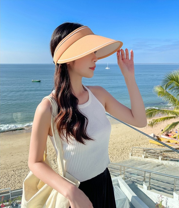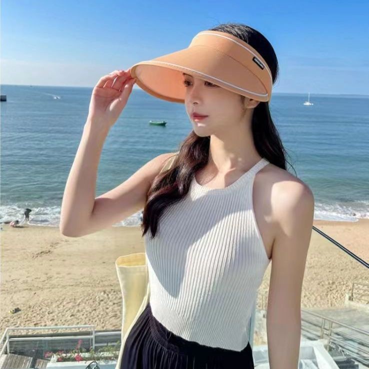 晚晚同款防晒帽女夏季户外遮阳帽子PVC防紫外线太阳帽大檐空顶帽