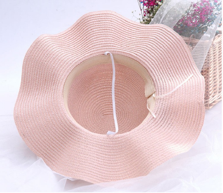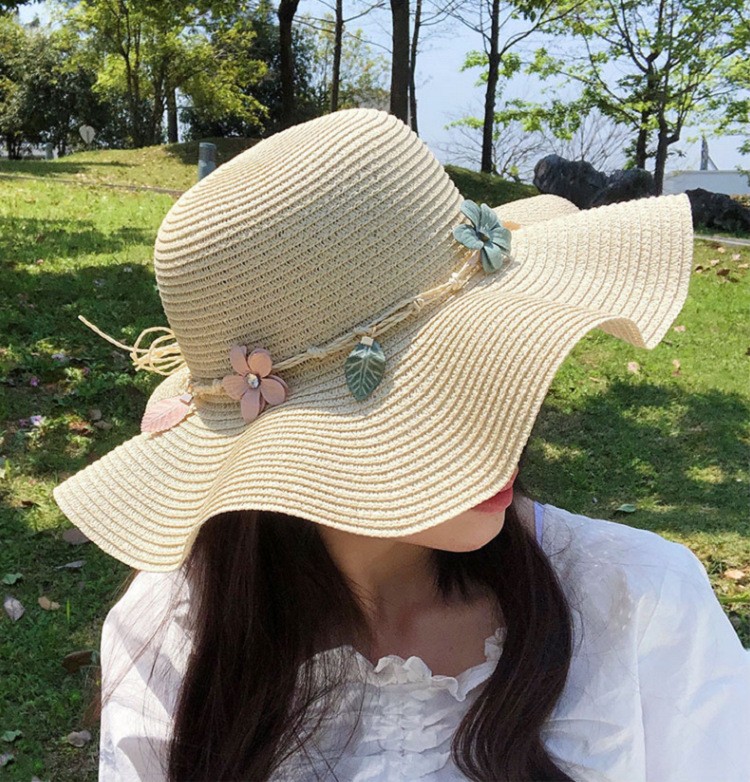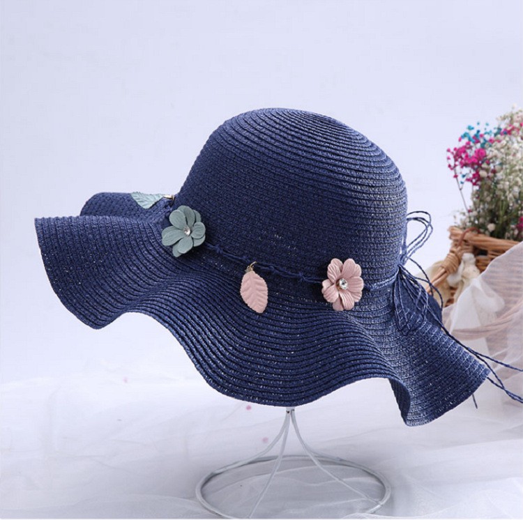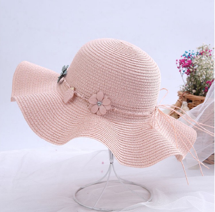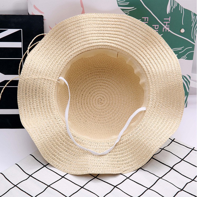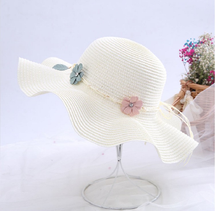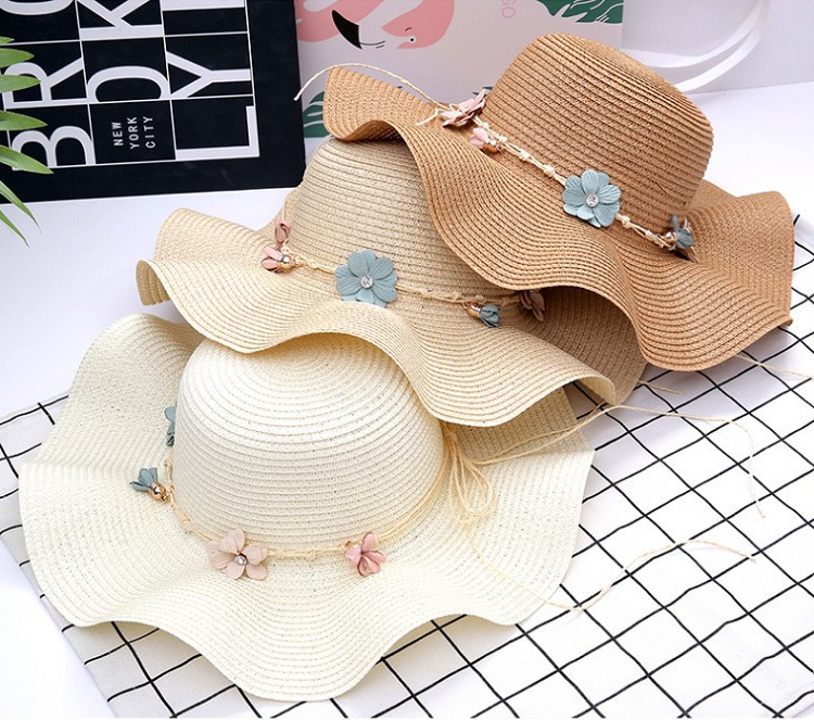 夏季防晒帽子女士度假沙滩遮阳草帽花朵圆顶波浪边亲子百搭遮阳帽