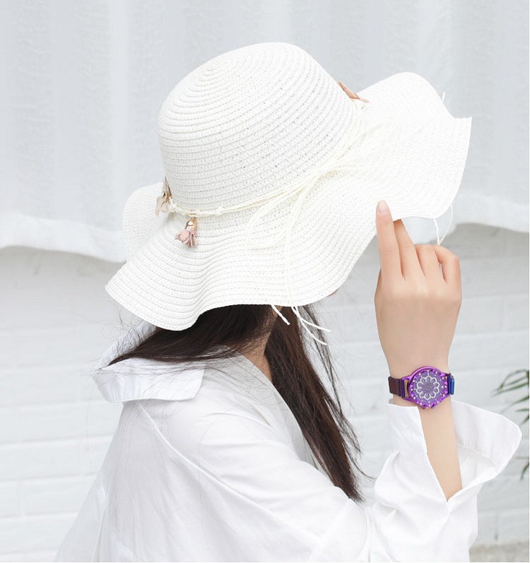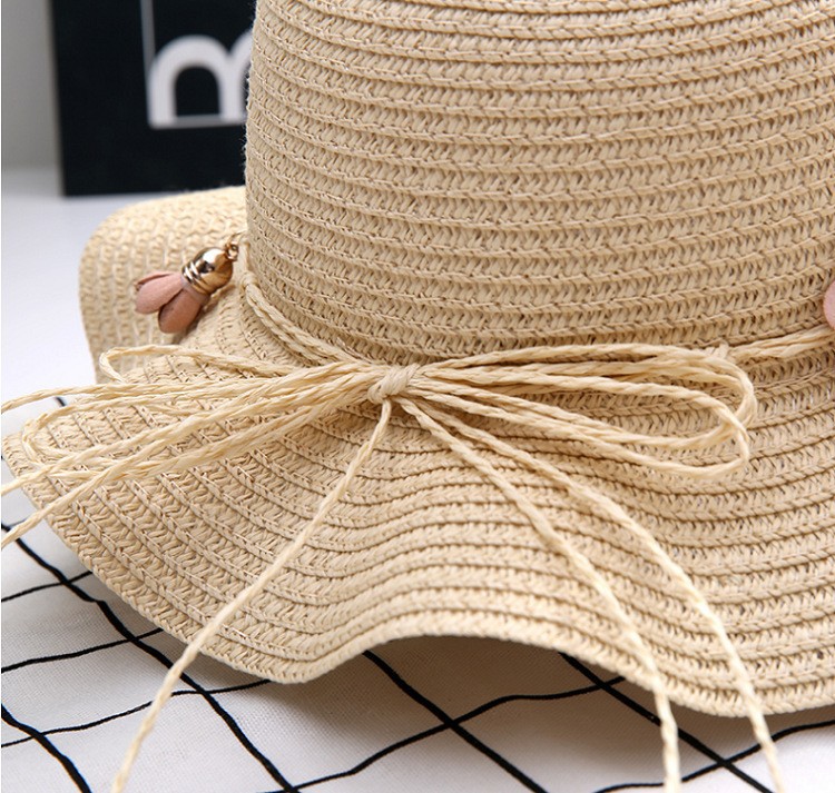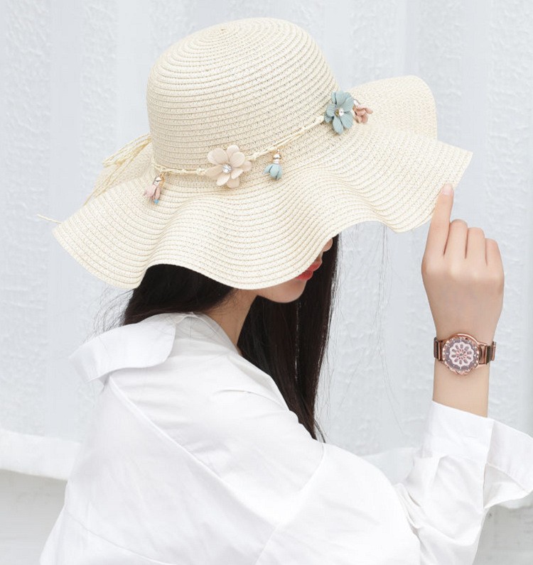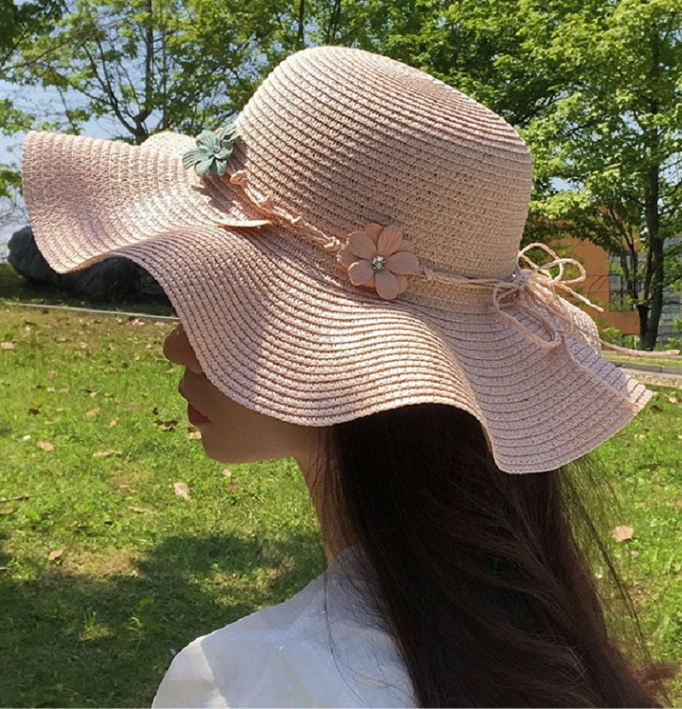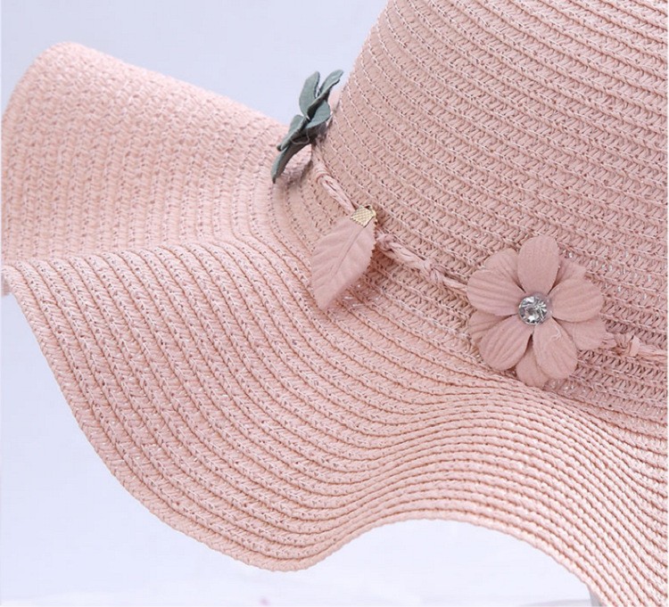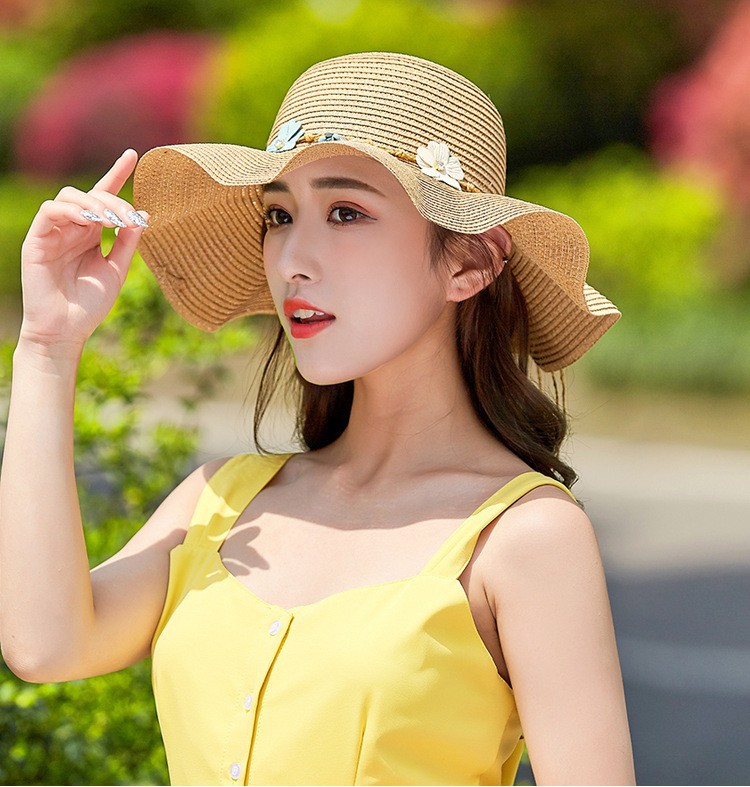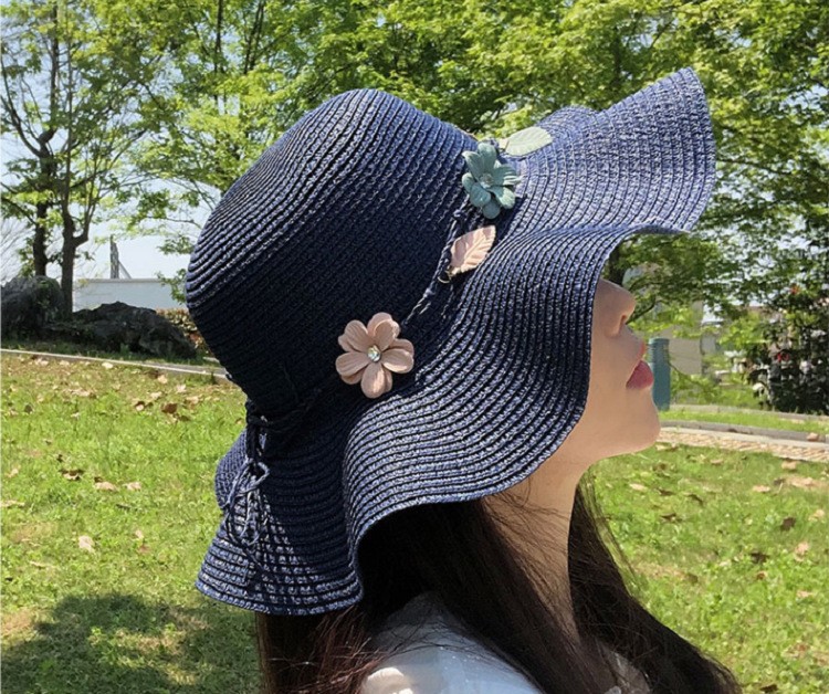 夏季防晒帽子女士度假沙滩遮阳草帽花朵圆顶波浪边亲子百搭遮阳帽
