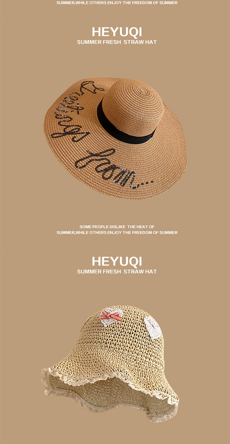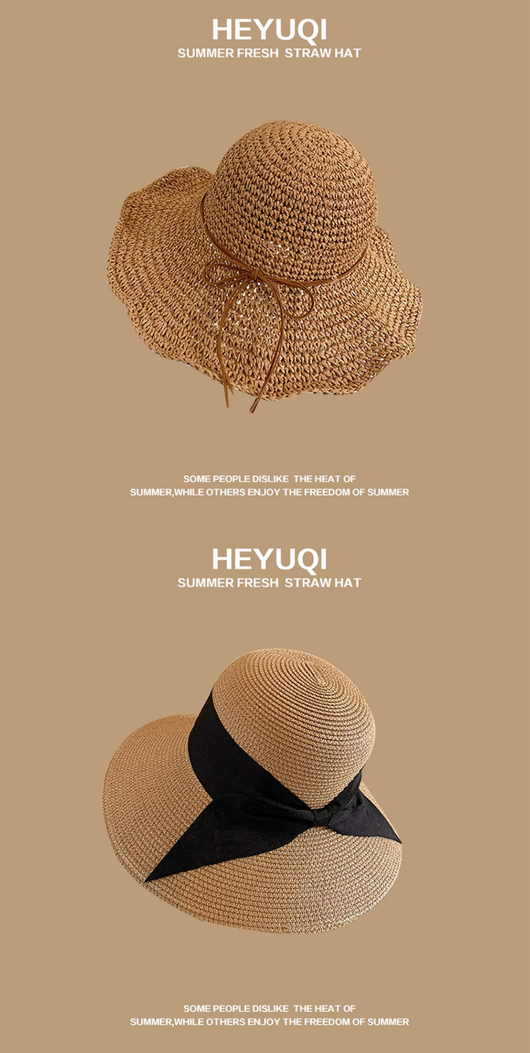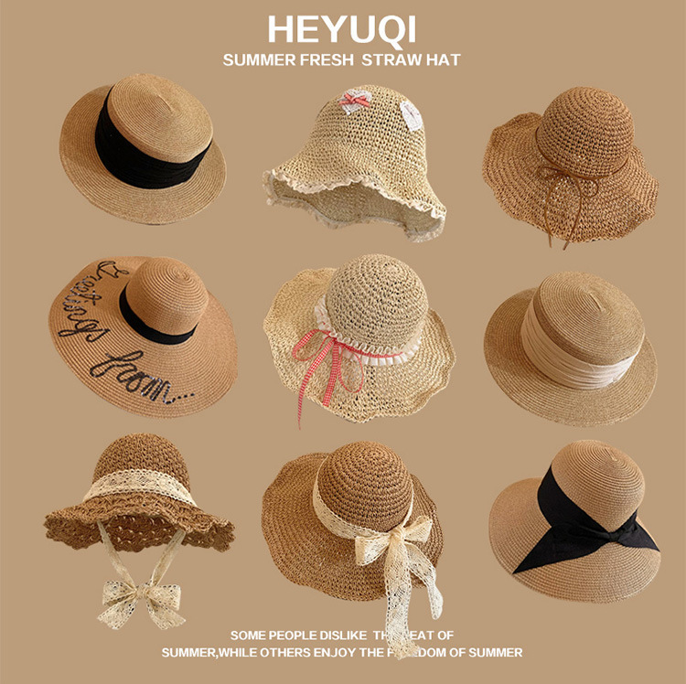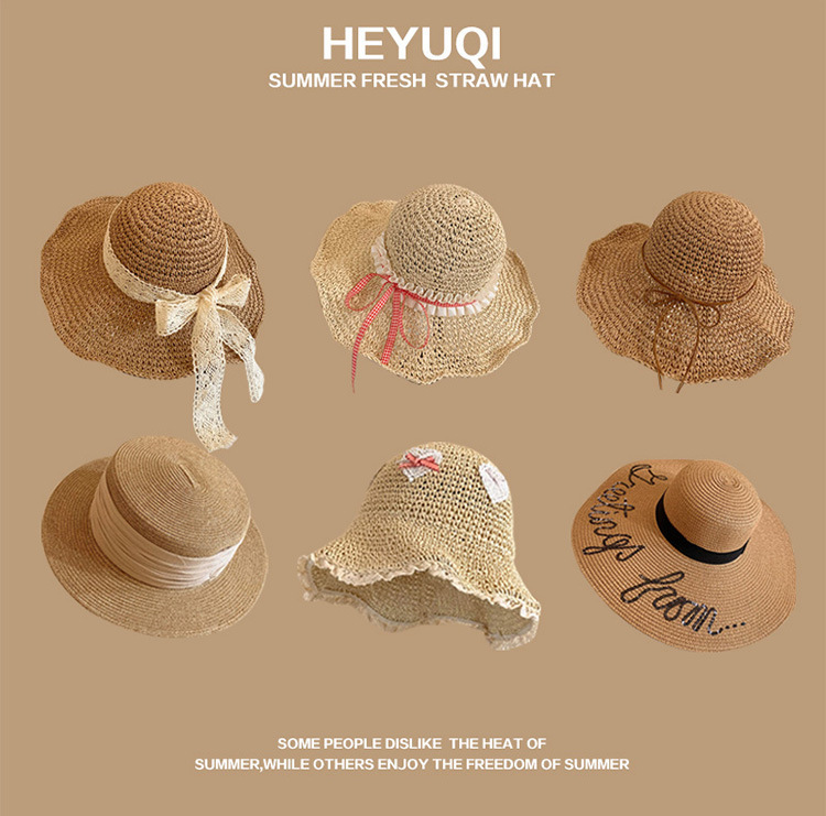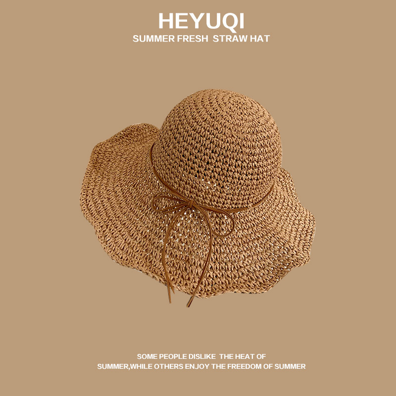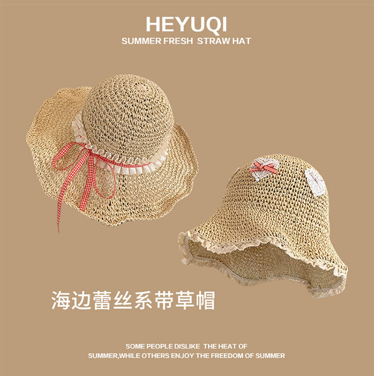 大帽檐草帽女法式度假风蕾丝夏天海边赫本风镂空遮阳沙滩太阳帽子