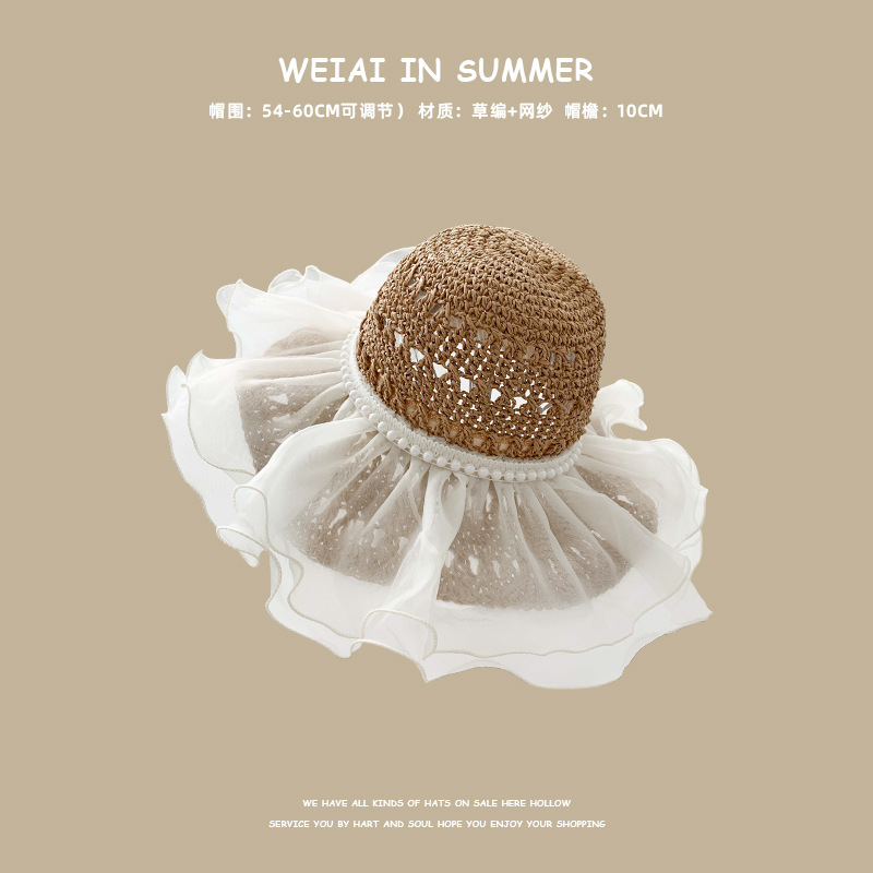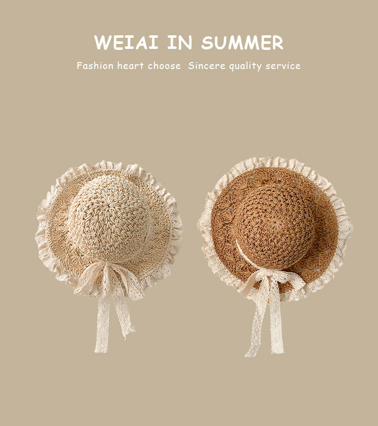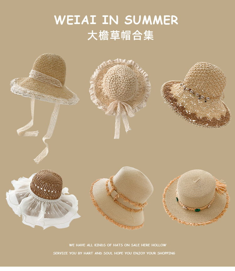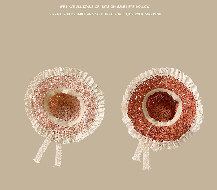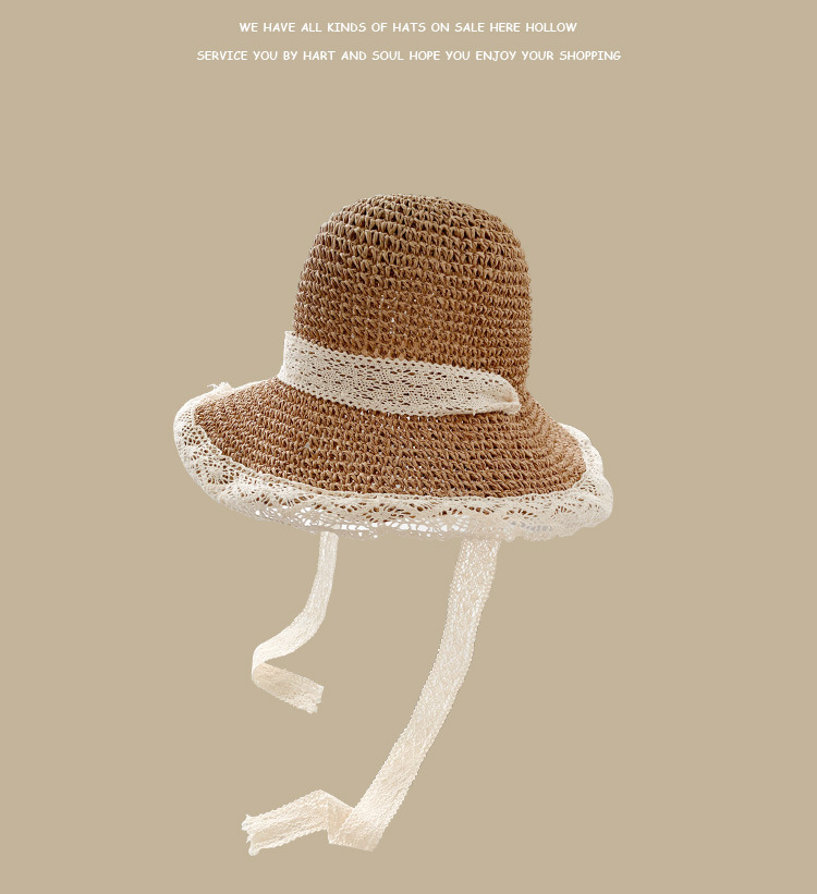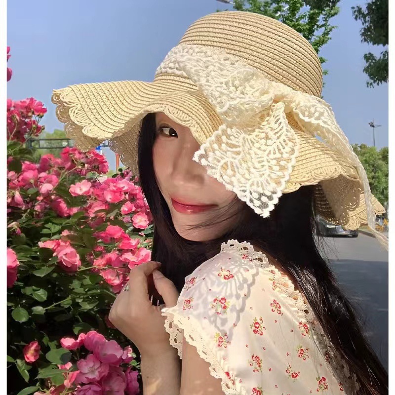 日系夏季沙滩帽蕾丝草帽女小清新防晒帽遮阳旅游度假可折叠太阳帽