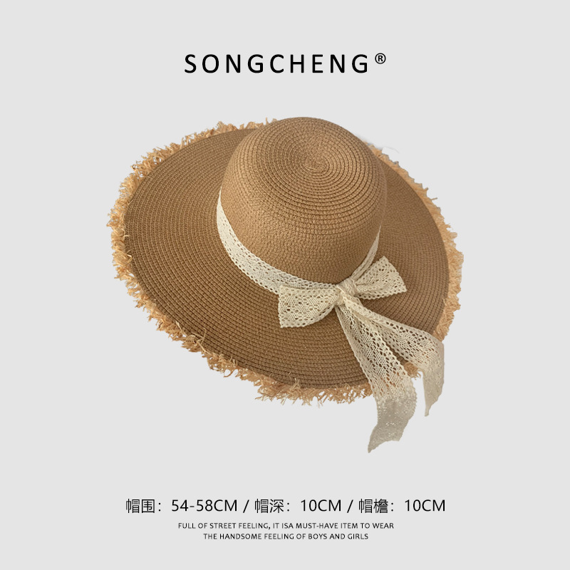 草帽女系带镂空草编帽女夏出游防晒沙滩海边新款太阳帽遮阳帽