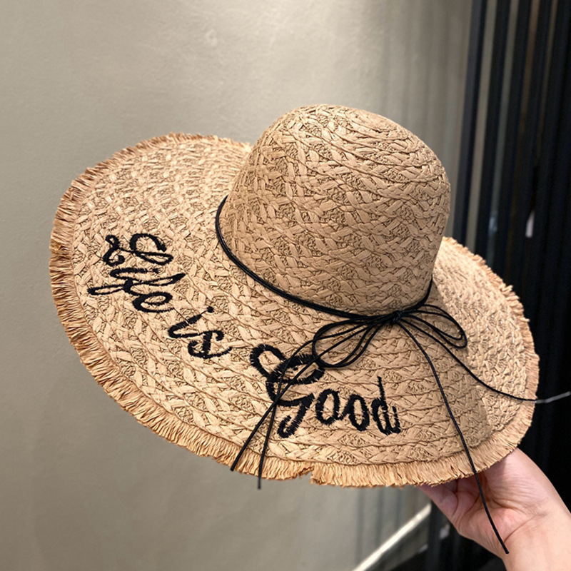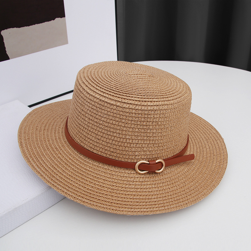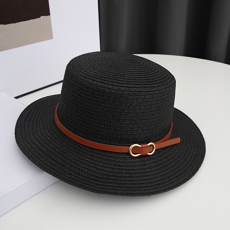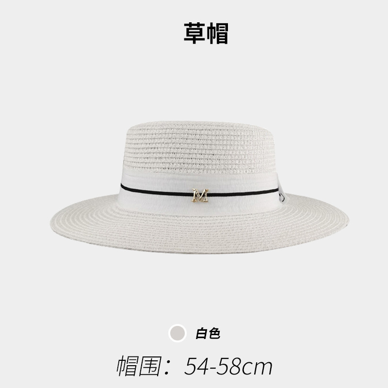 法式平顶草帽女新款夏季大帽檐遮阳帽海边度假沙滩帽防紫外线盆帽