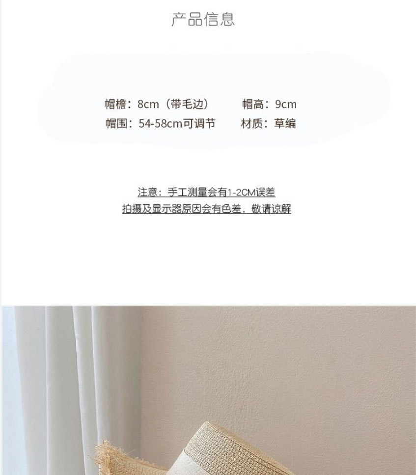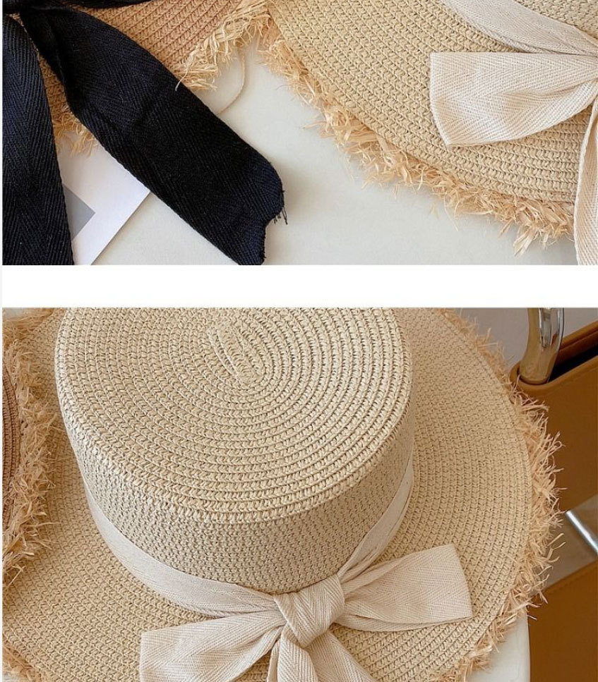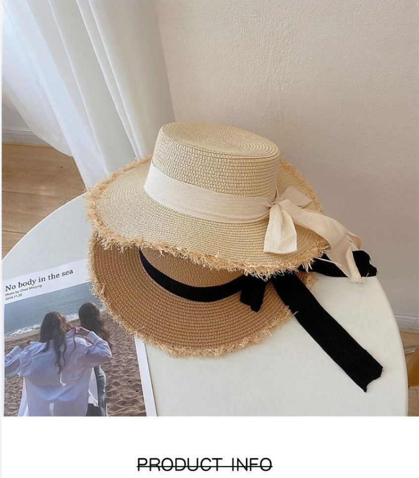 毛边草帽女夏季海边度假沙滩遮阳防晒帽蝴蝶结大帽檐太阳帽子