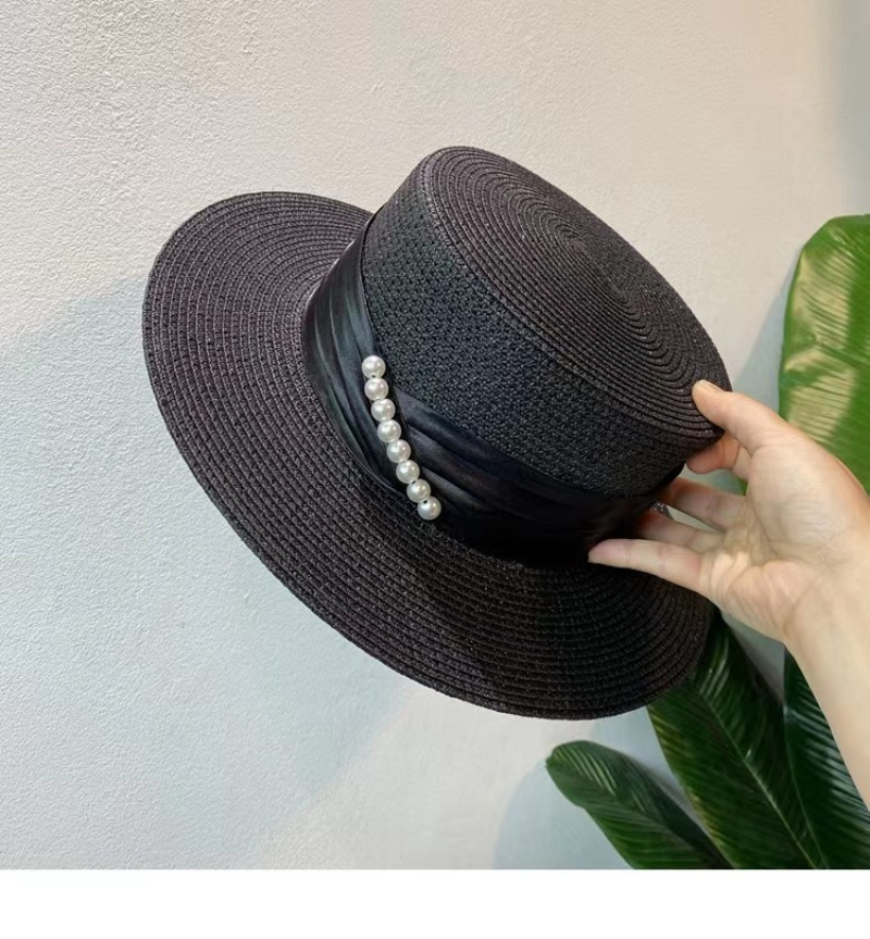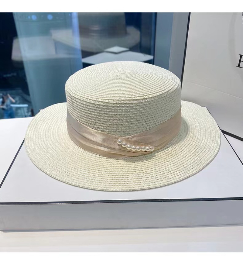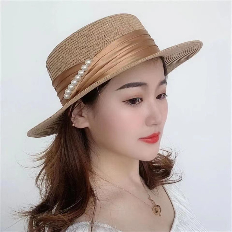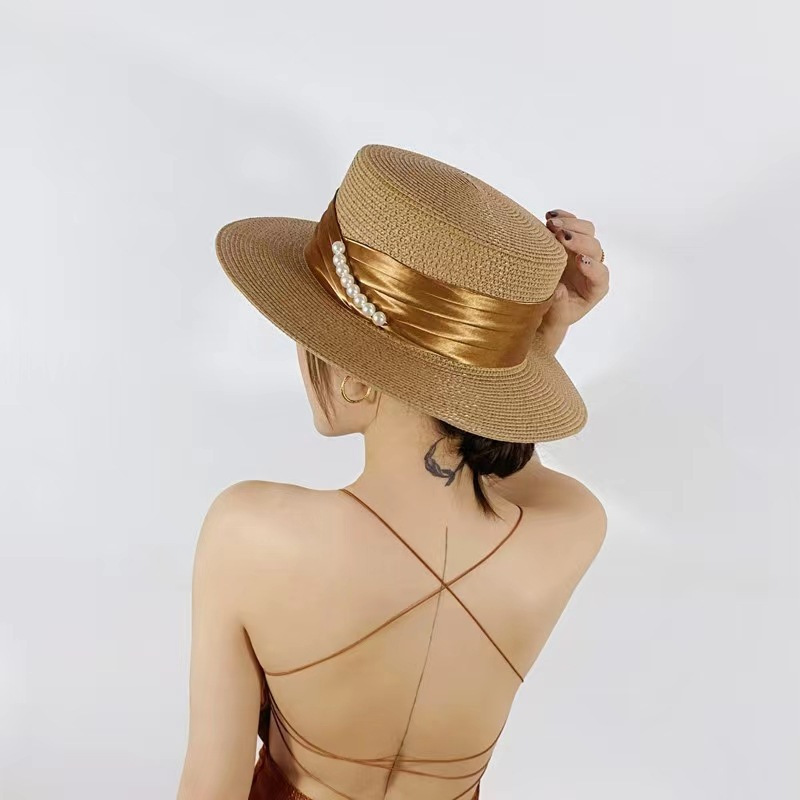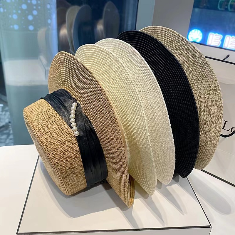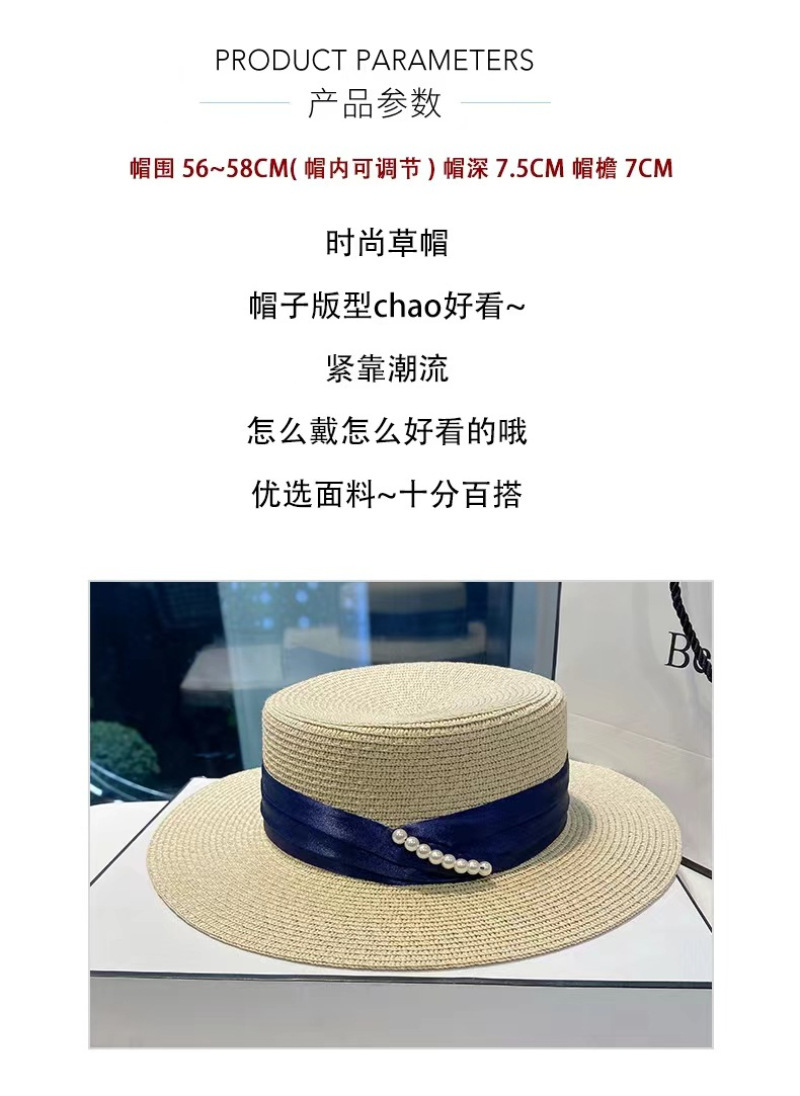 草帽女夏季海边平顶防晒遮阳帽子沙滩法式礼帽海边拍照草编太阳帽