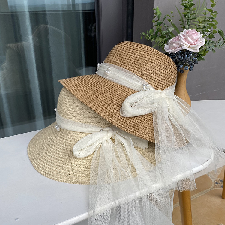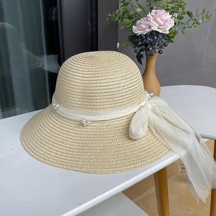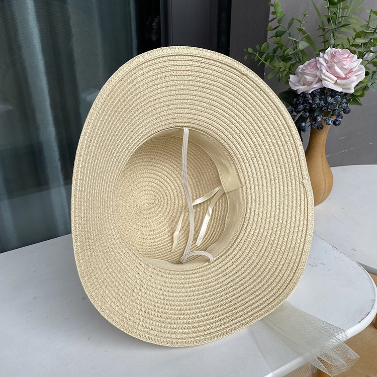 草帽法式甜美蕾丝蝴蝶结草帽女夏季海边度假大沿沙滩帽防晒太