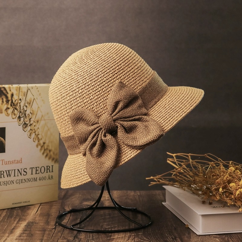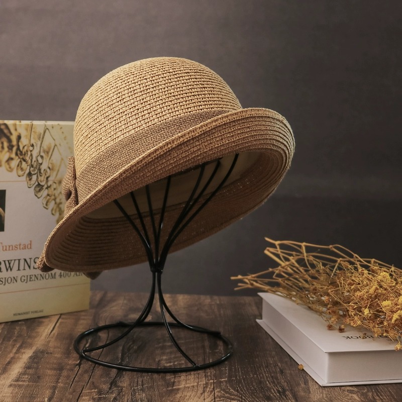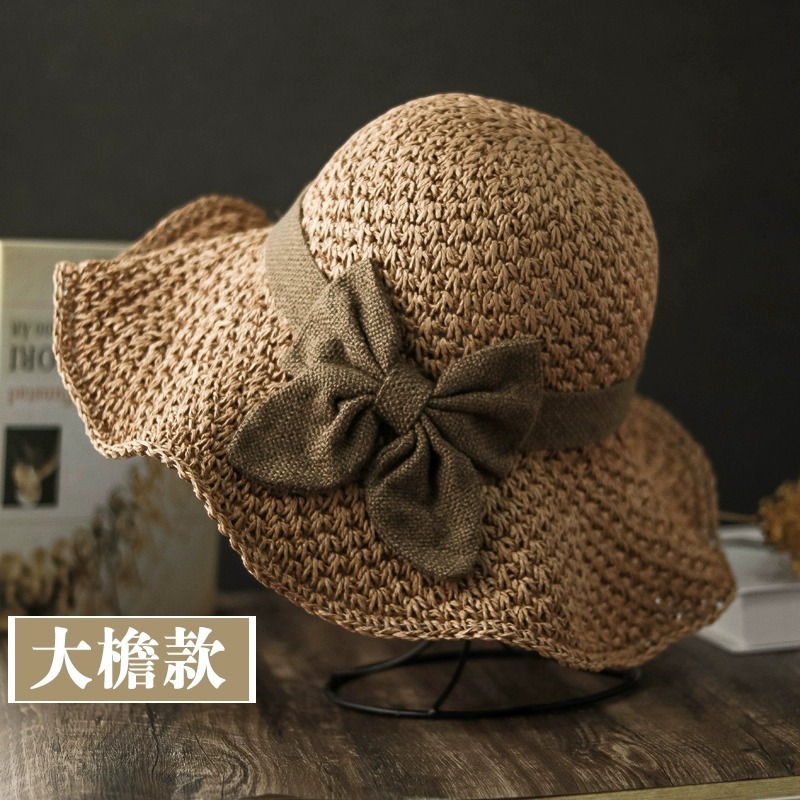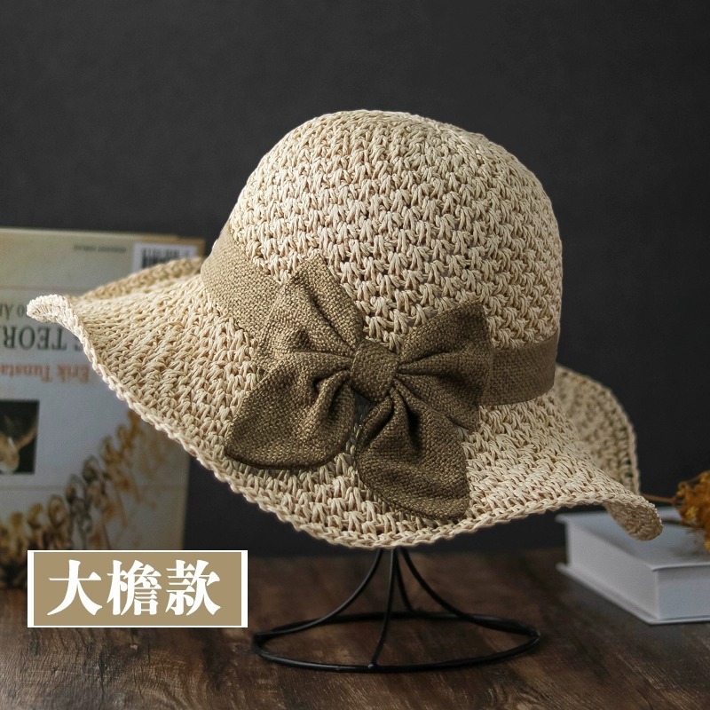 夏天草帽女休闲文艺风百搭渔夫帽小礼帽遮阳沙滩帽可折叠凉帽