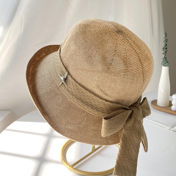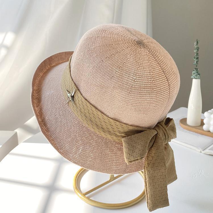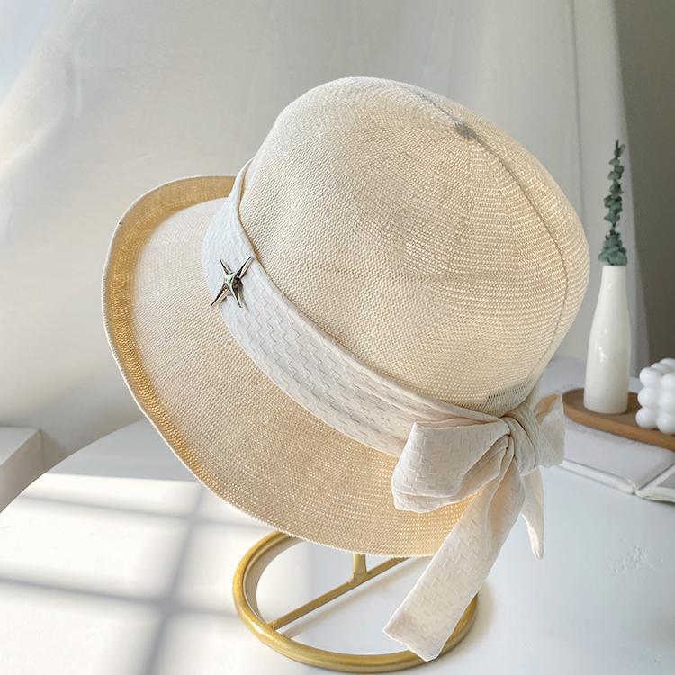 高品质2025春夏季草帽女星蝴蝶结渔夫帽遮阳帽防晒太阳帽女水桶帽