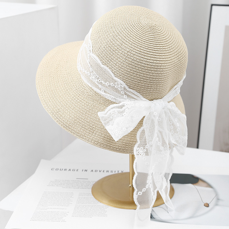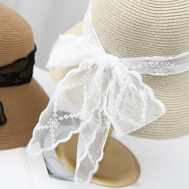 大檐草帽女高品质新款春夏季长蝴蝶结遮阳帽女出游太阳帽