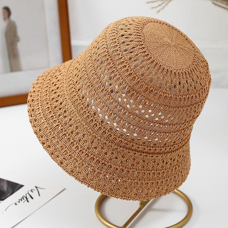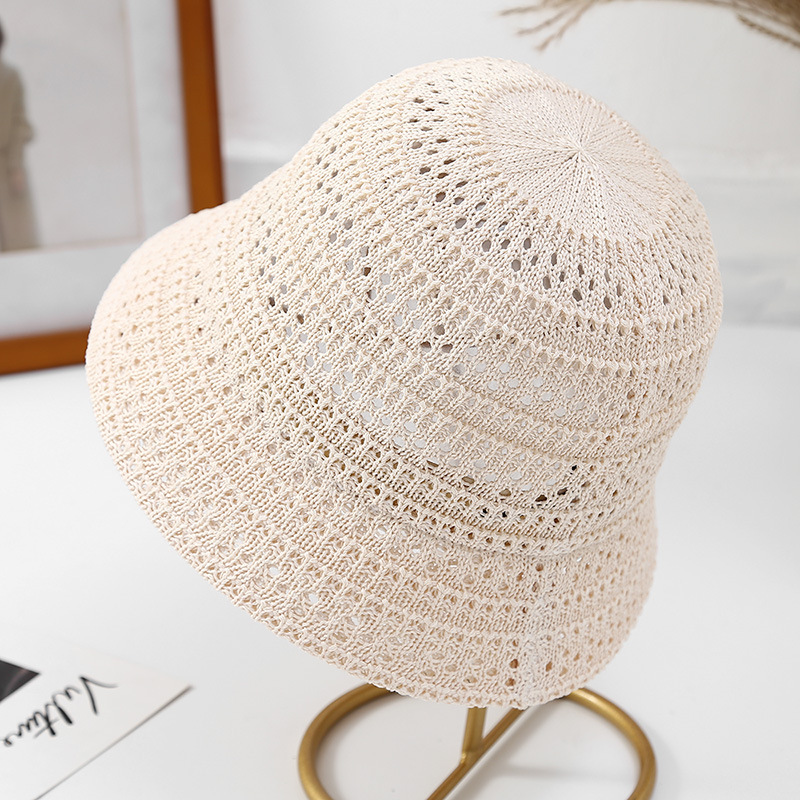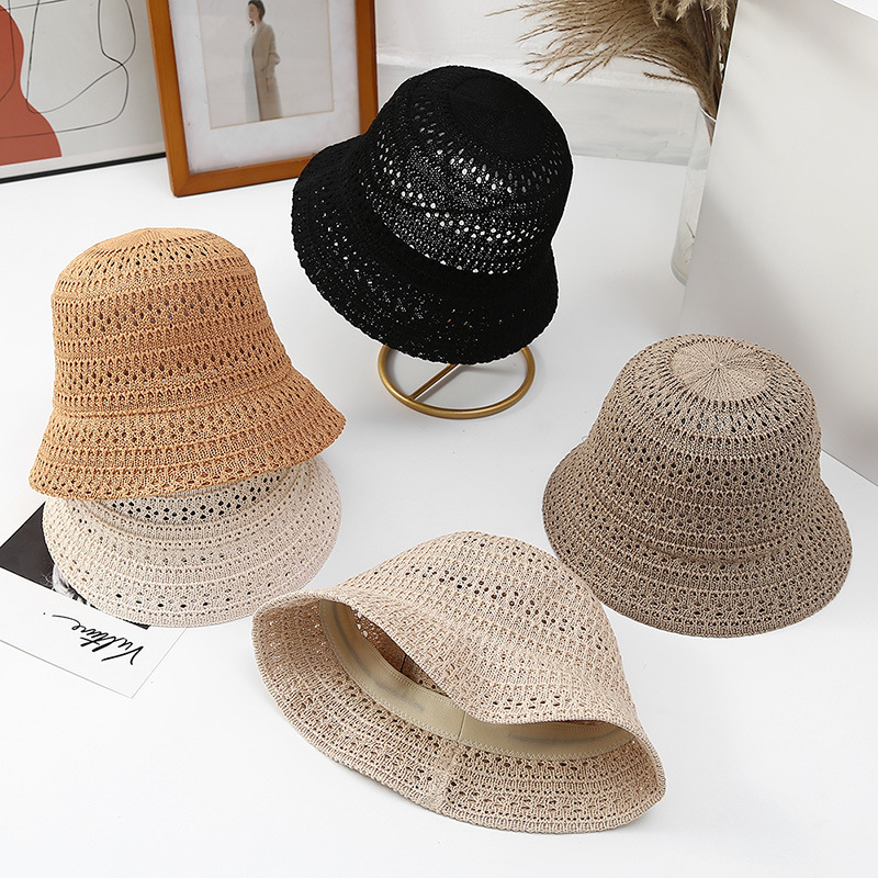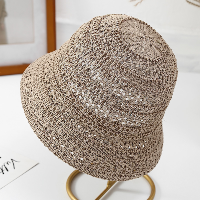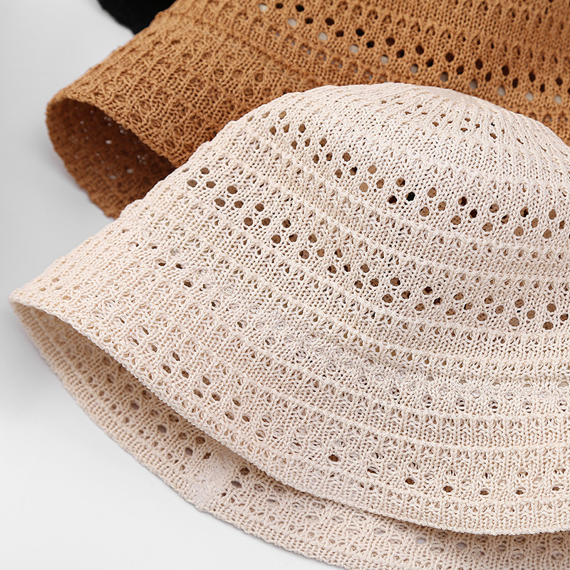 高品质日系新款镂空透气针织渔夫帽女春夏季户外防晒遮阳帽水桶帽