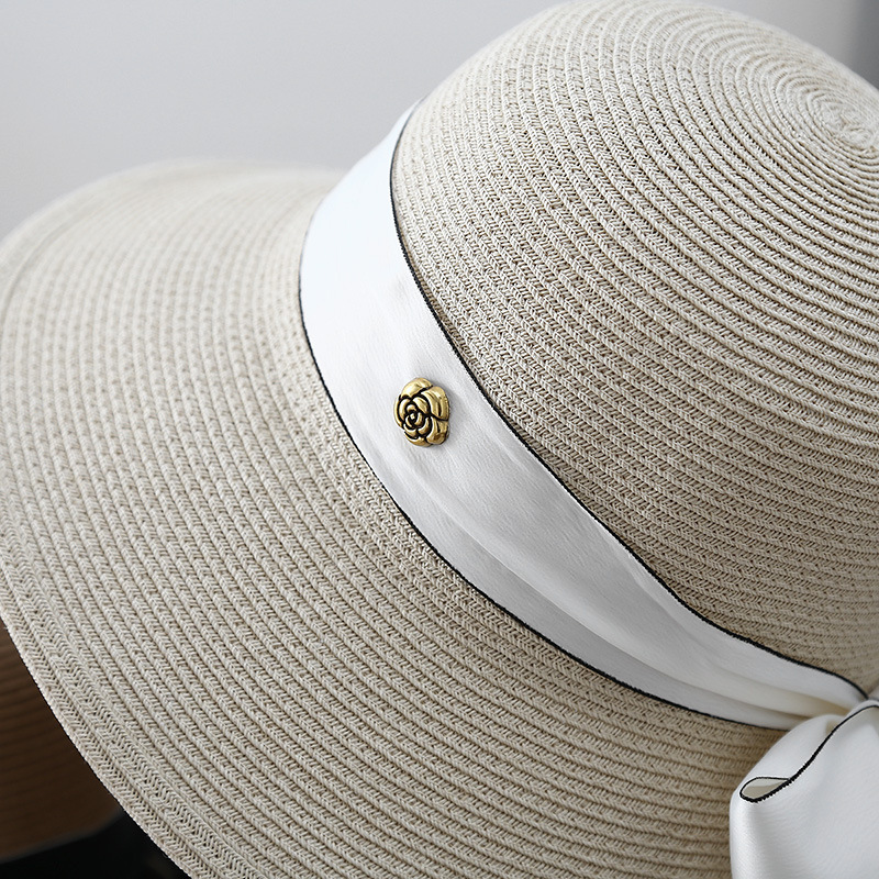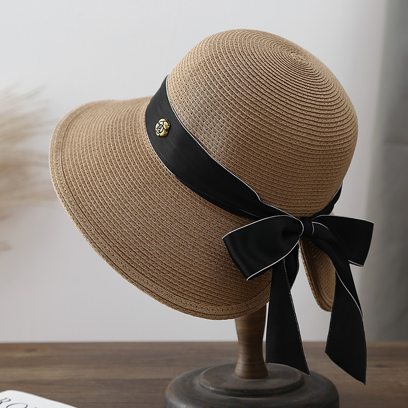草帽女夏出游遮阳帽高品质日本设计师款细草编蝴蝶结可折叠百搭