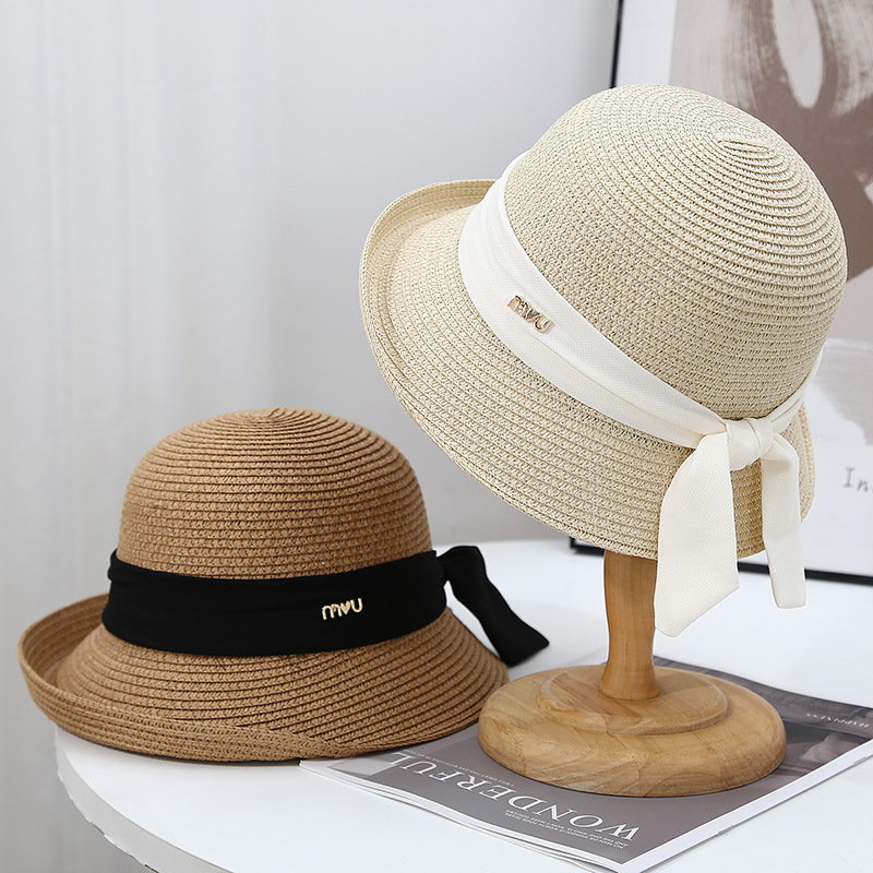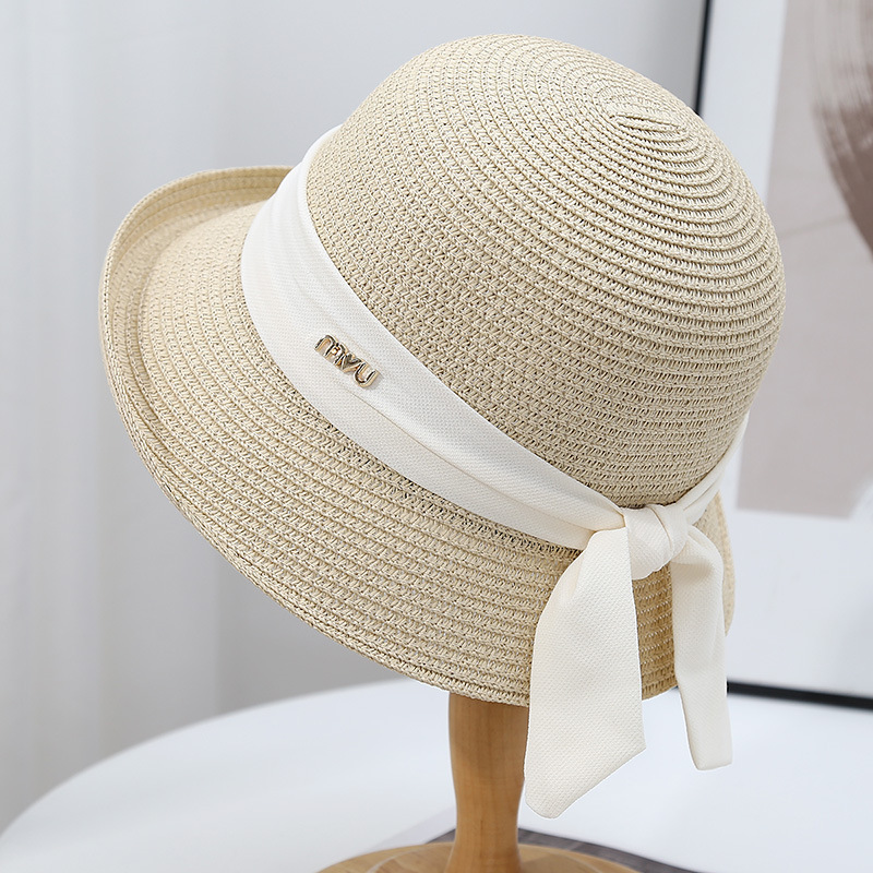 高品质新款草帽女夏季海边防紫外线遮阳帽蝴蝶结渔夫帽百搭