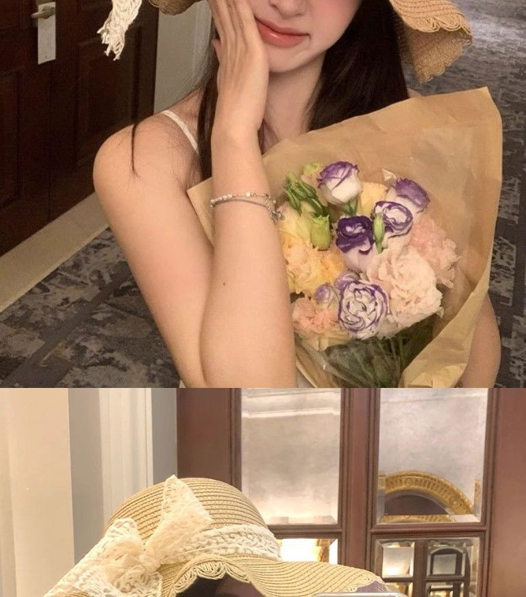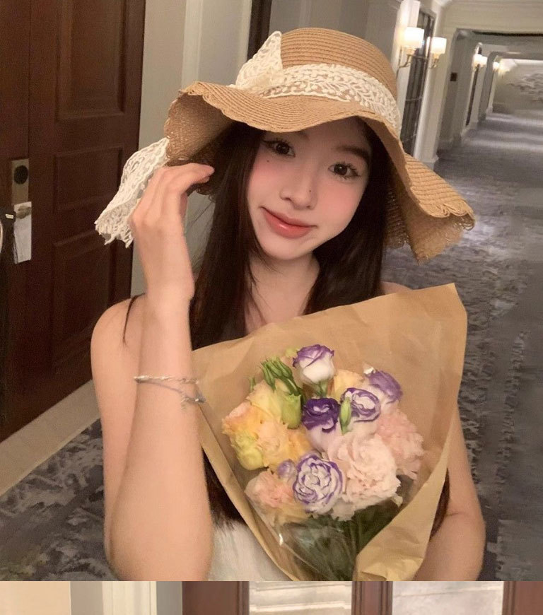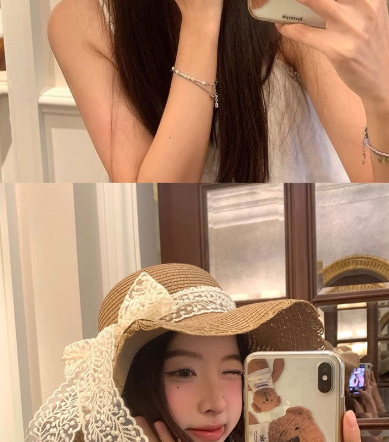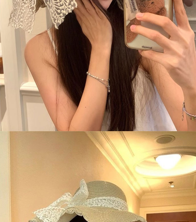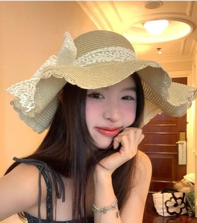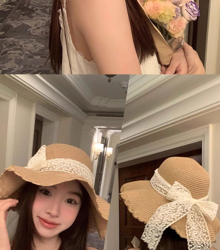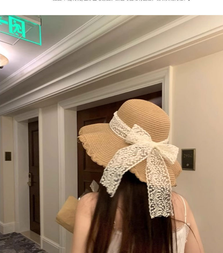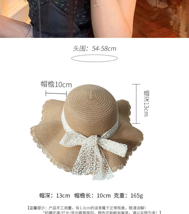 草帽女夏防晒遮阳帽子甜美渔夫帽透气蕾丝蝴蝶结大帽檐草帽女沙滩