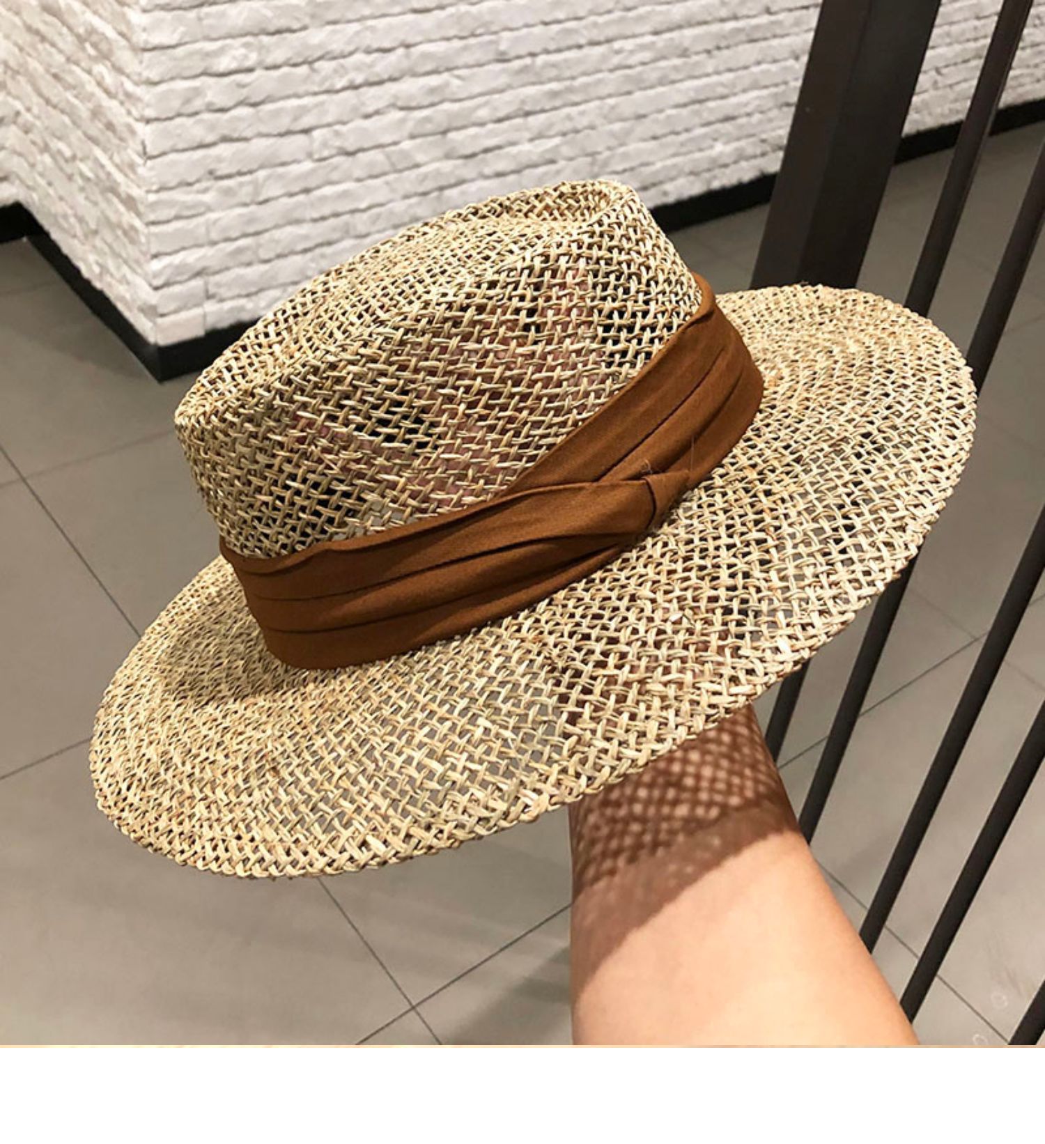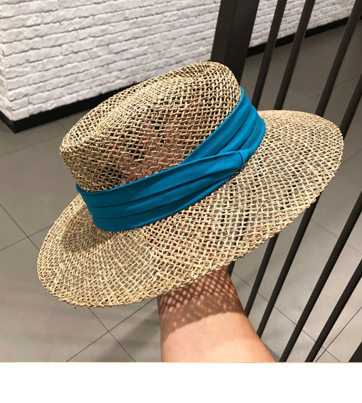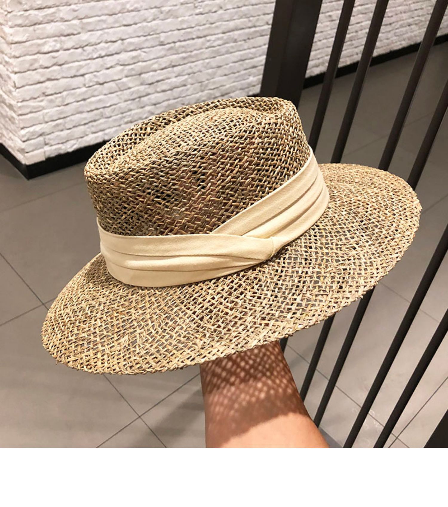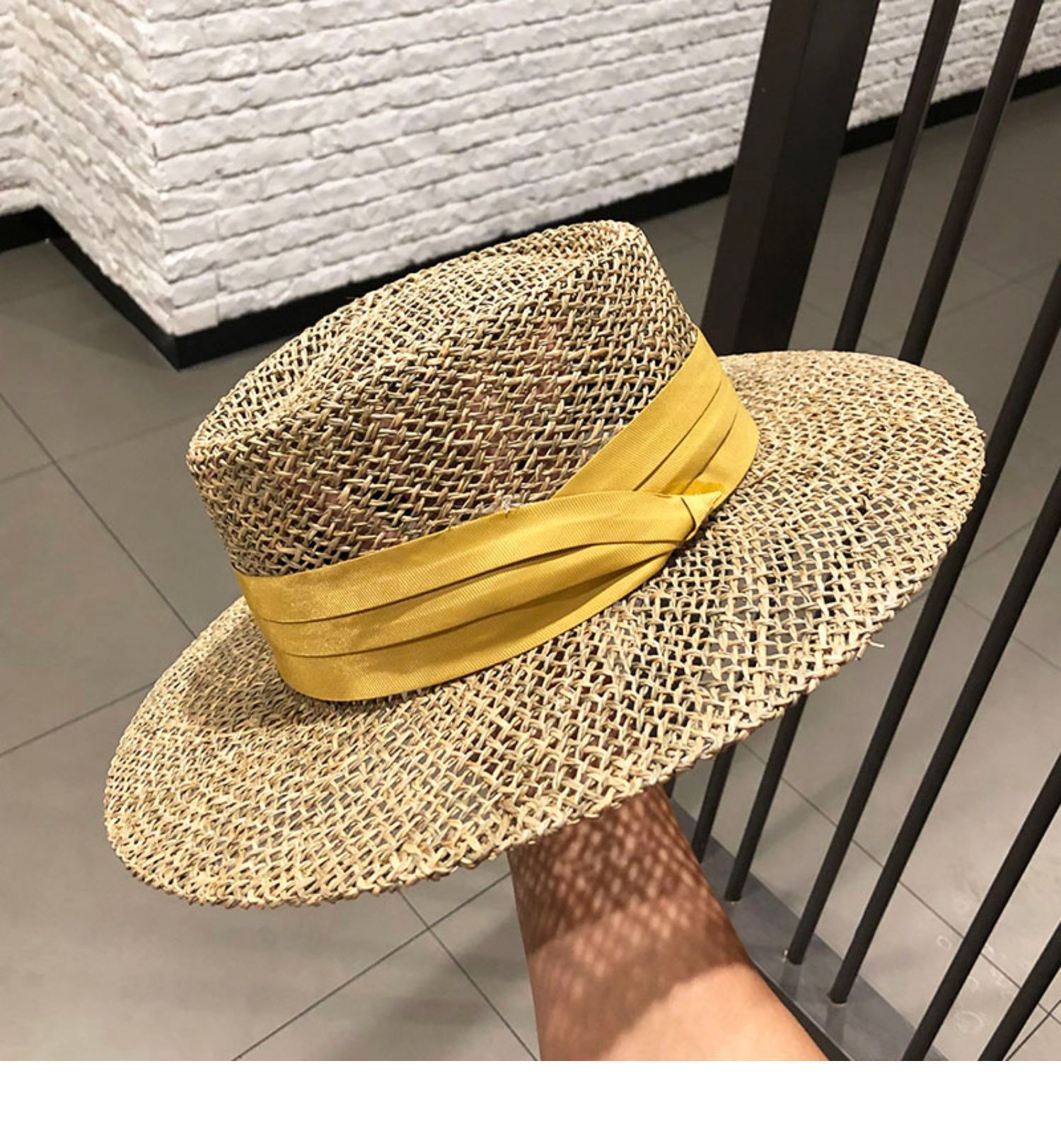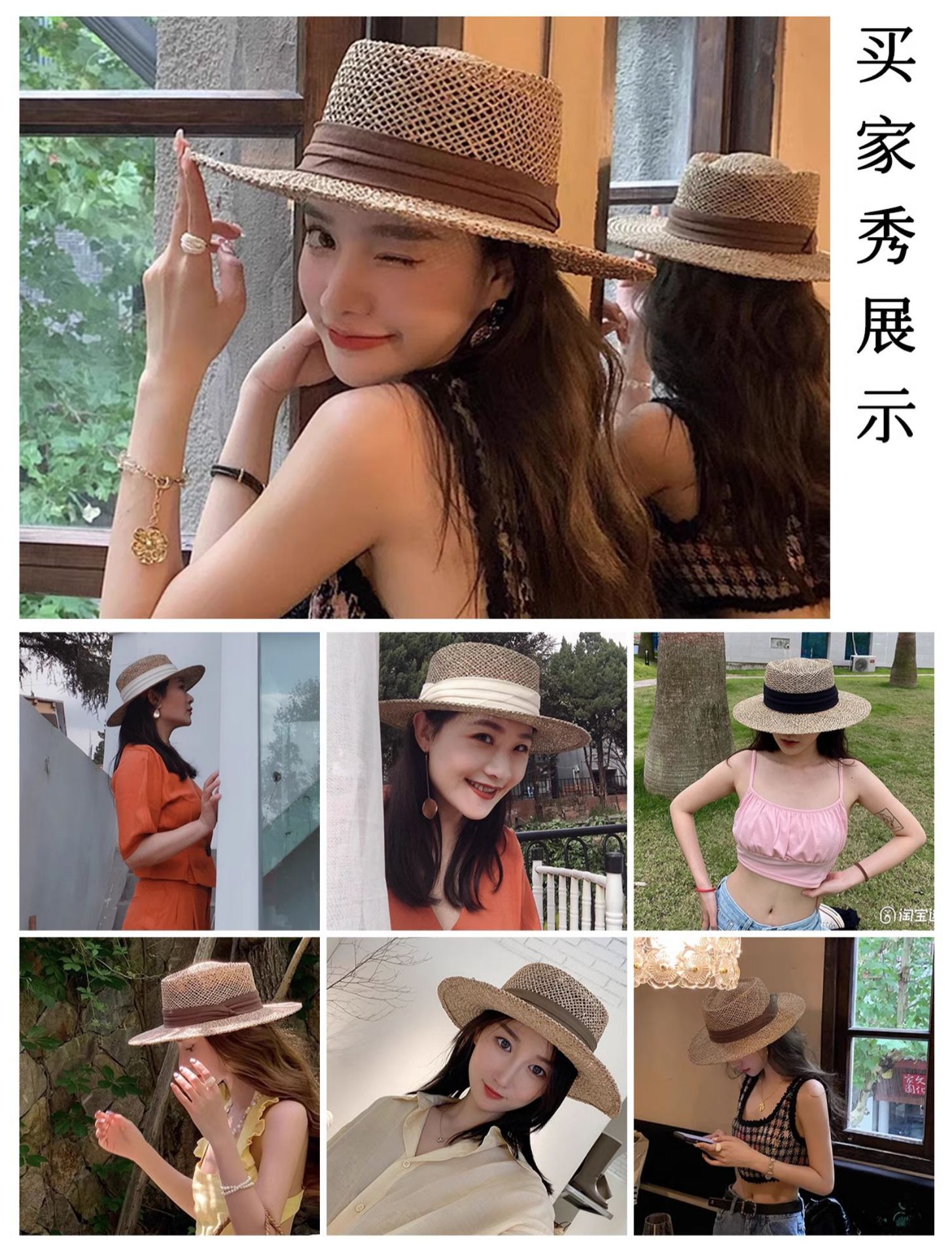 韩国ins草编网红平顶礼帽子女欧美风英伦时尚出游度假镂空遮阳帽