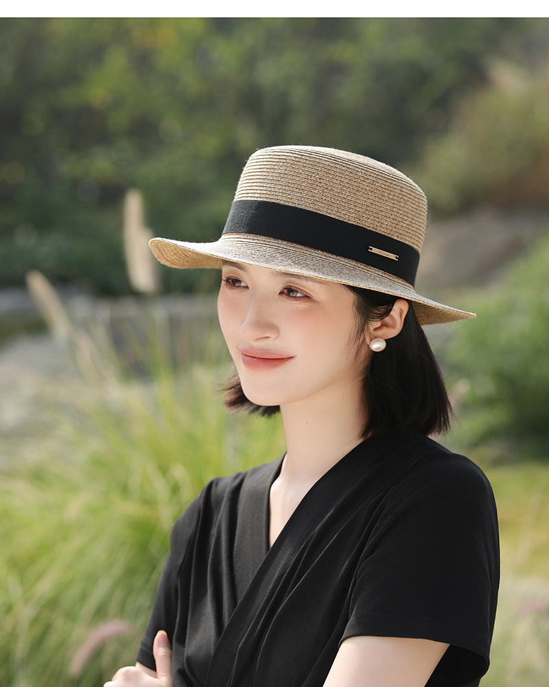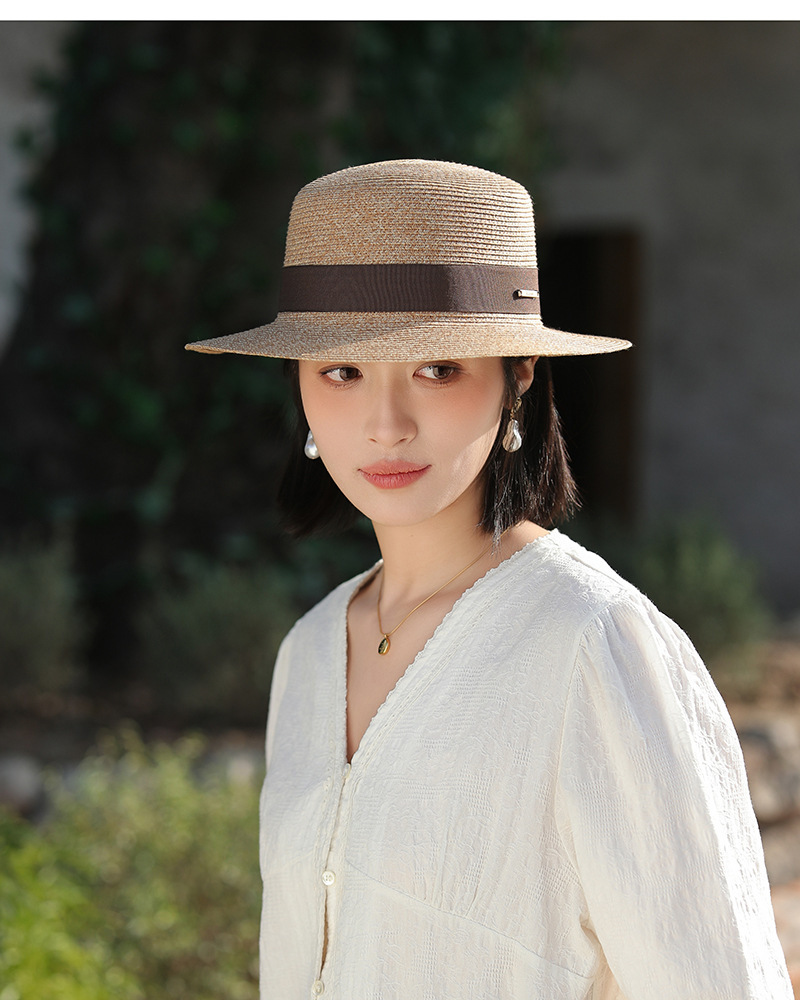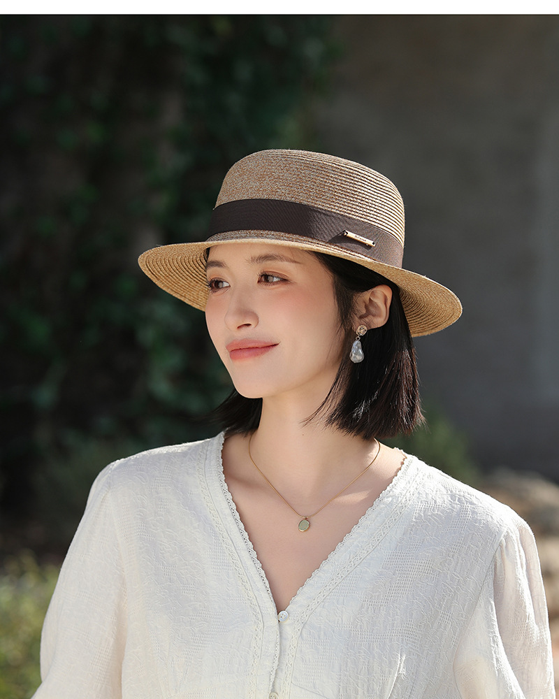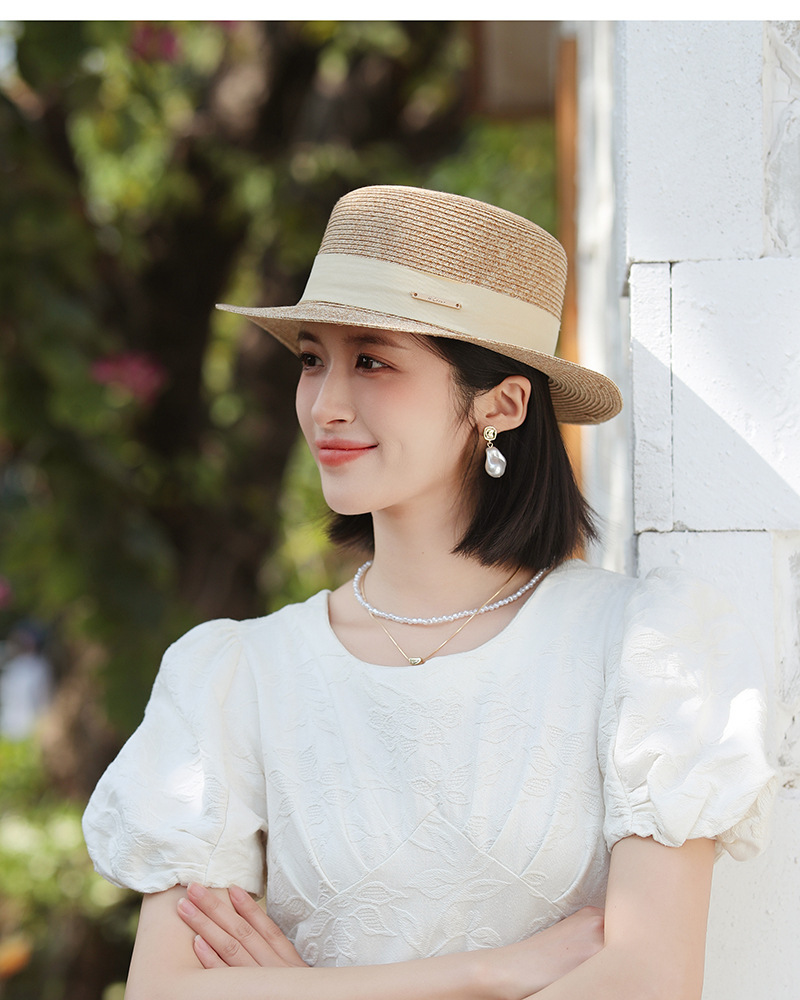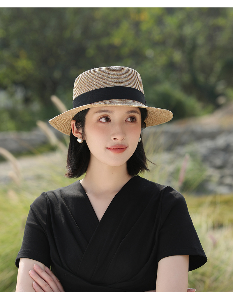 草帽风法式平顶赫本女夏天海边度假遮阳帽优雅轻奢风防晒礼帽批发