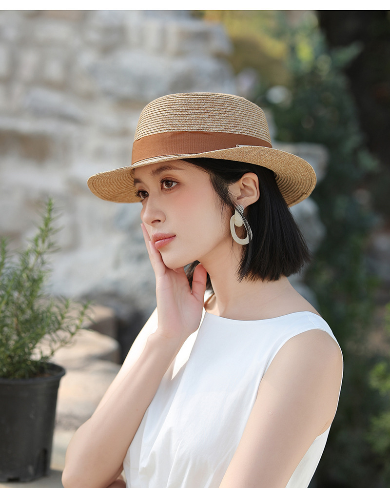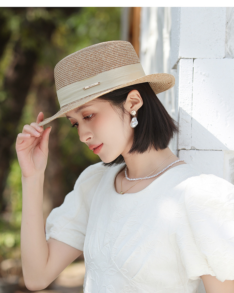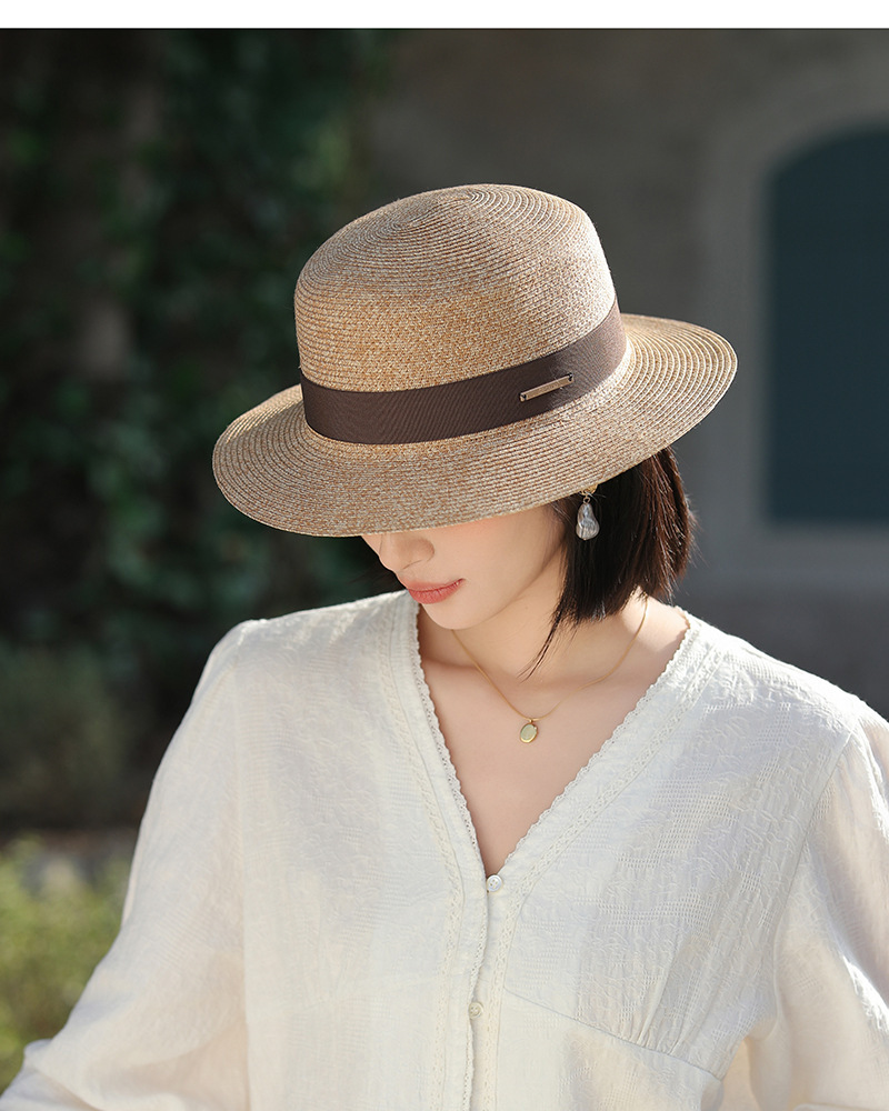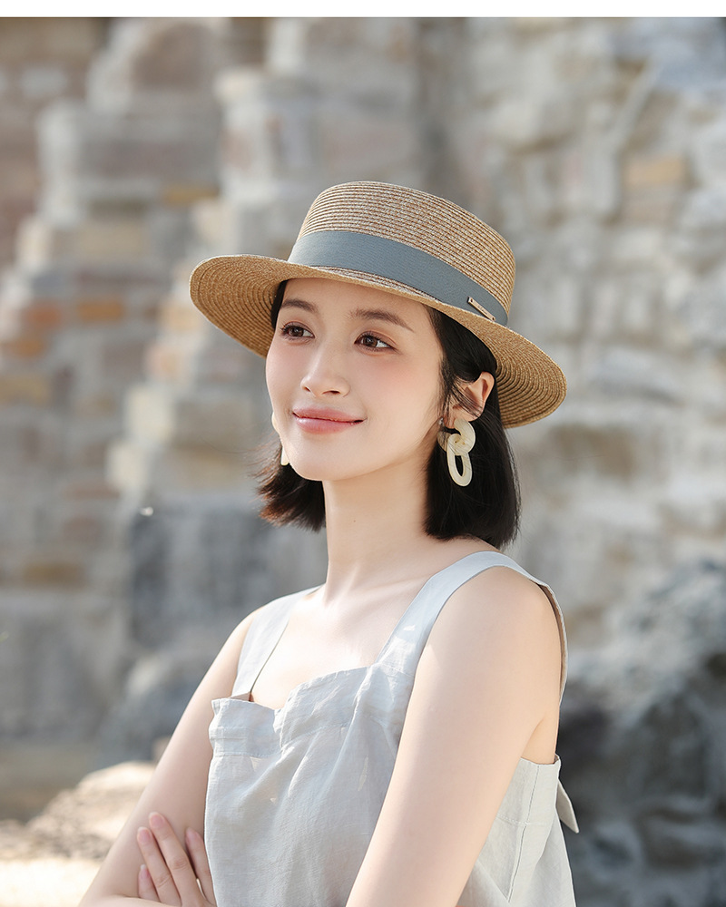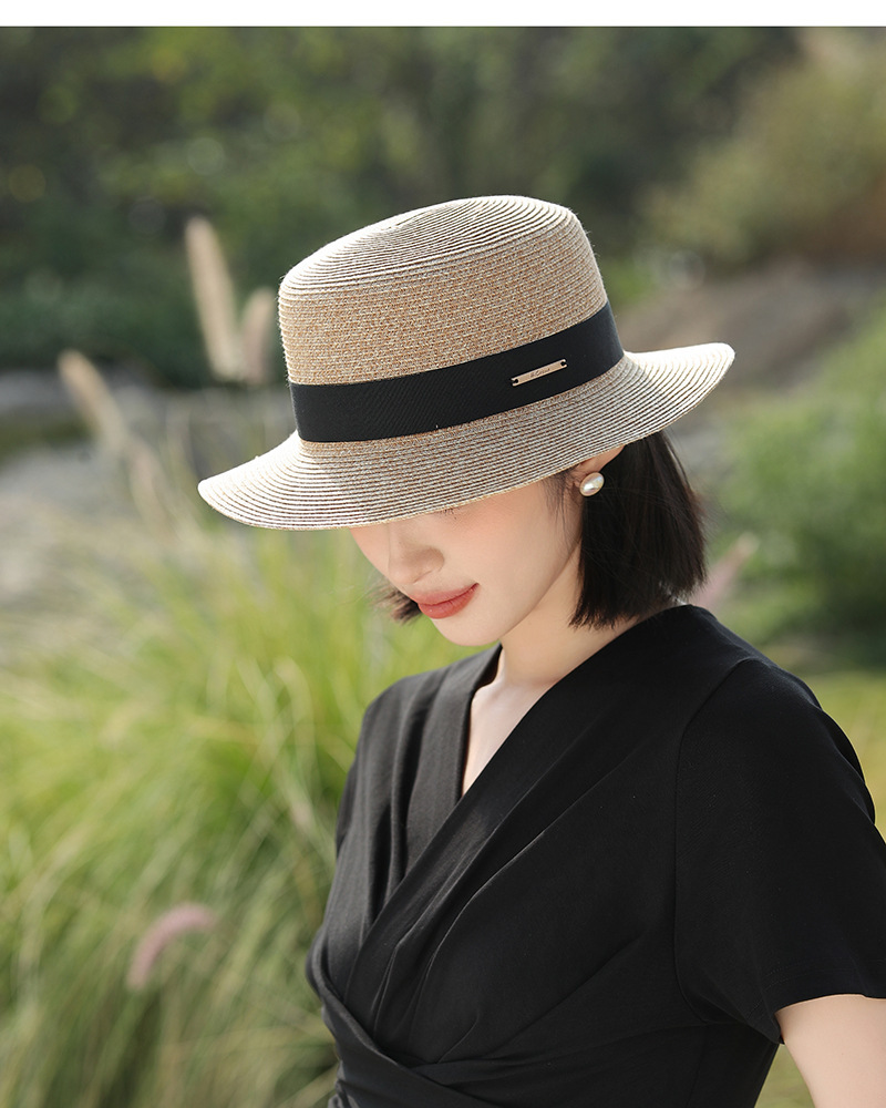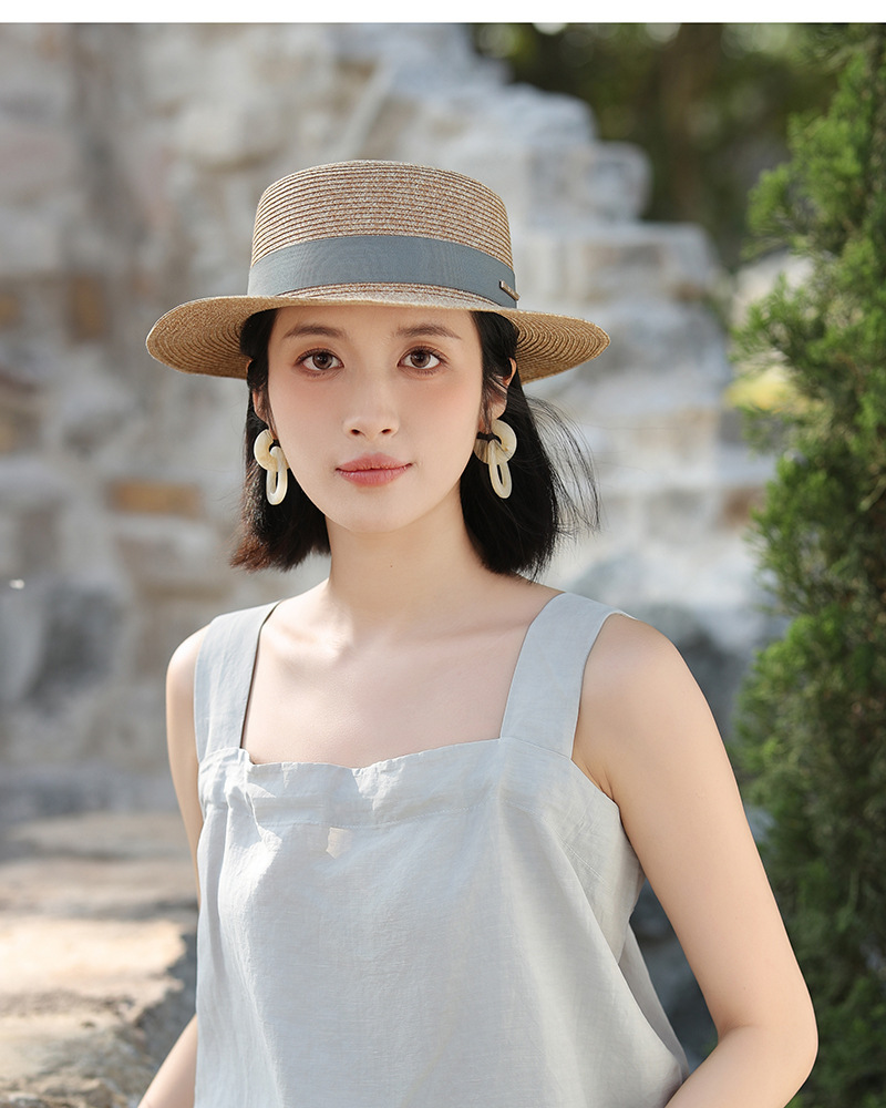 草帽风法式平顶赫本女夏天海边度假遮阳帽优雅轻奢风防晒礼帽批发