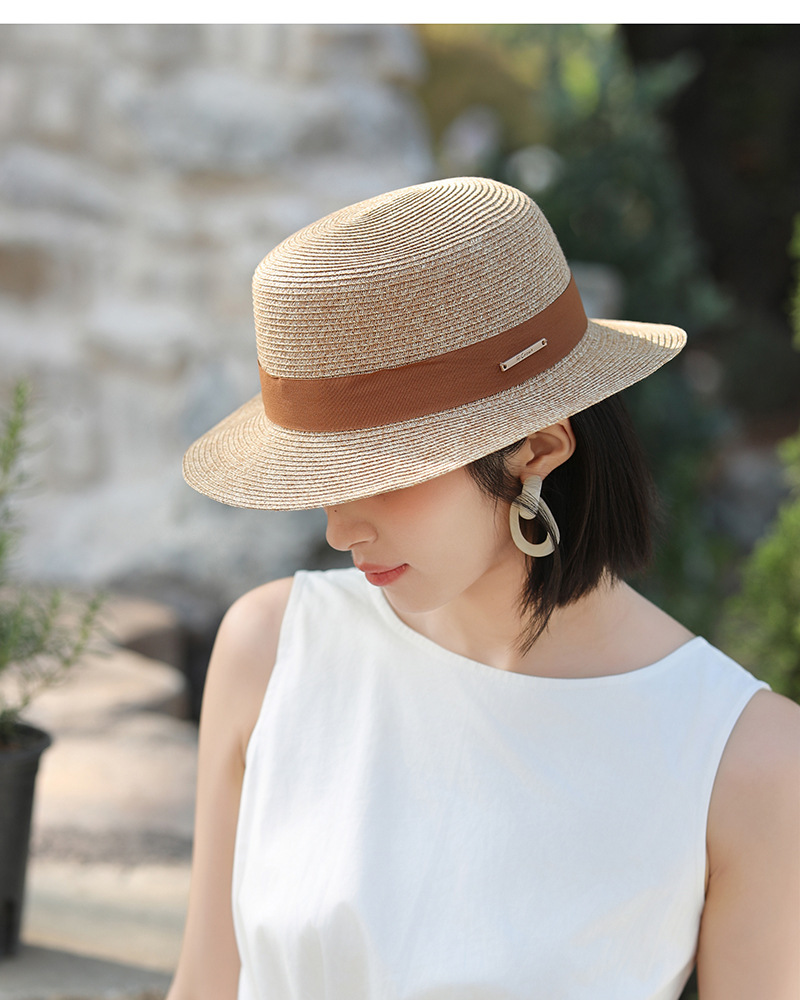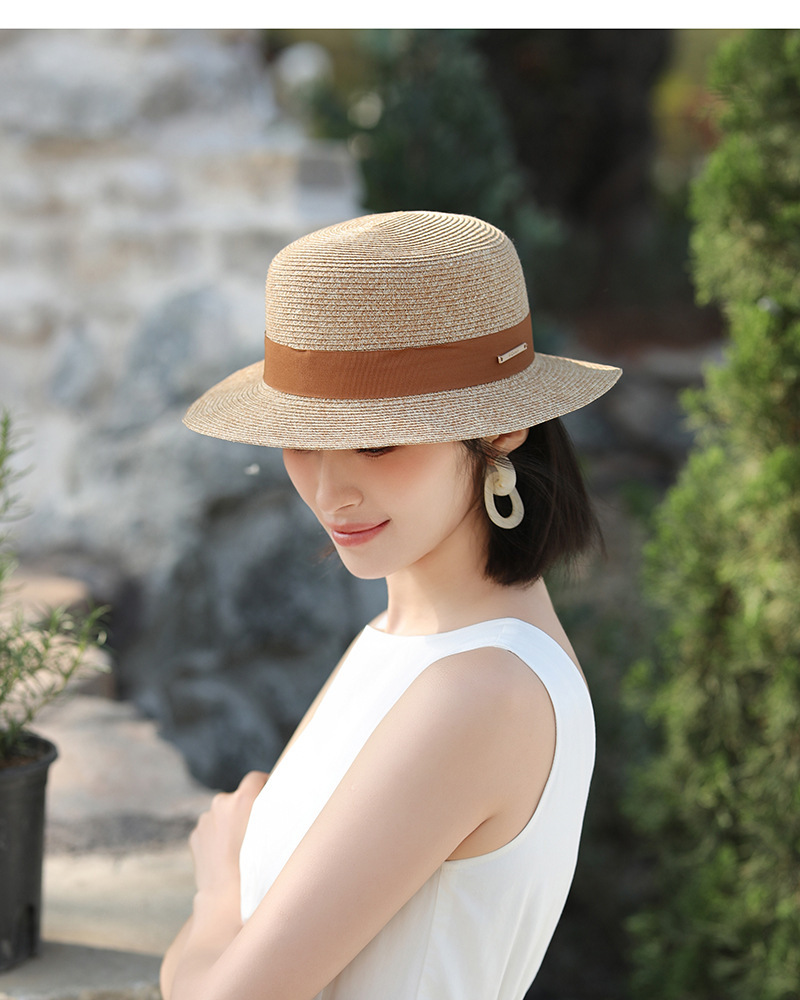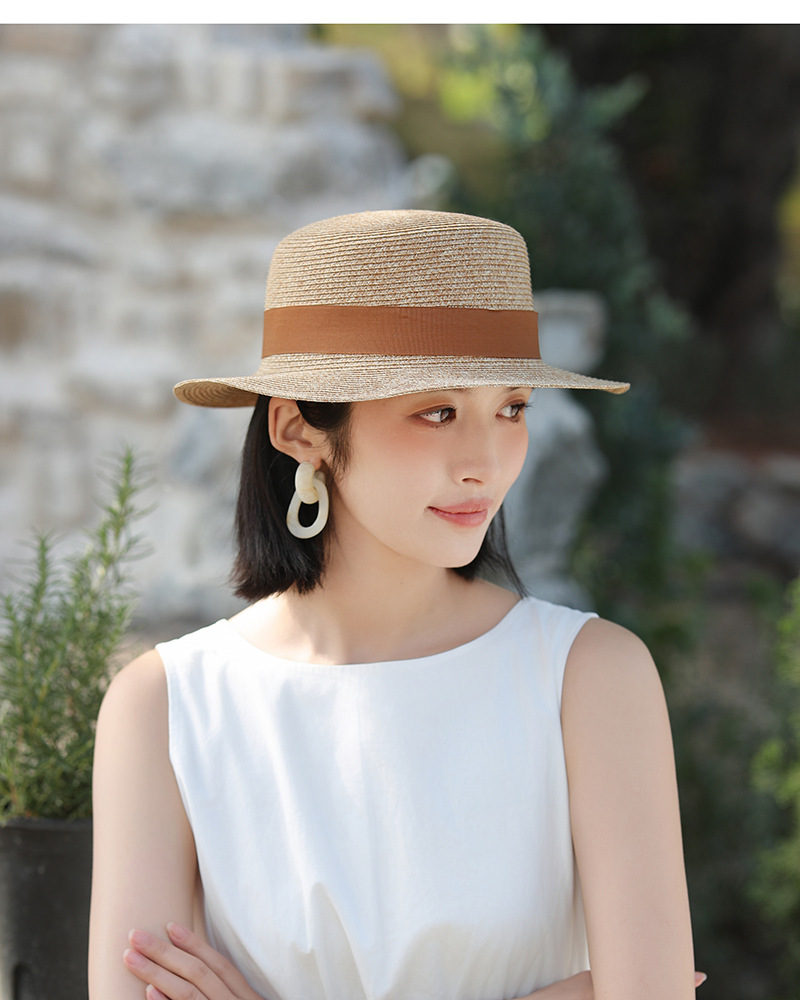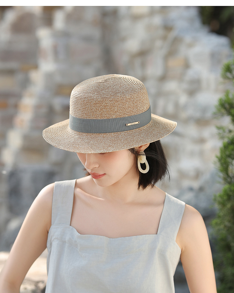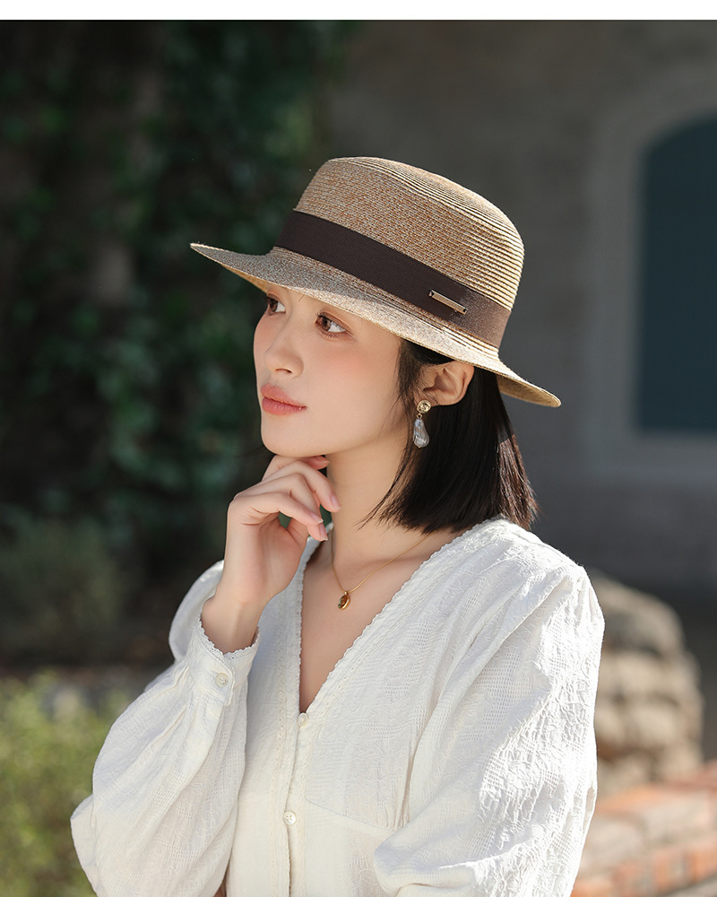 草帽风法式平顶赫本女夏天海边度假遮阳帽优雅轻奢风防晒礼帽批发