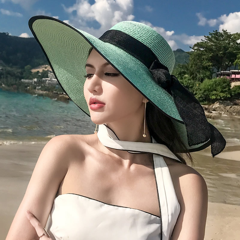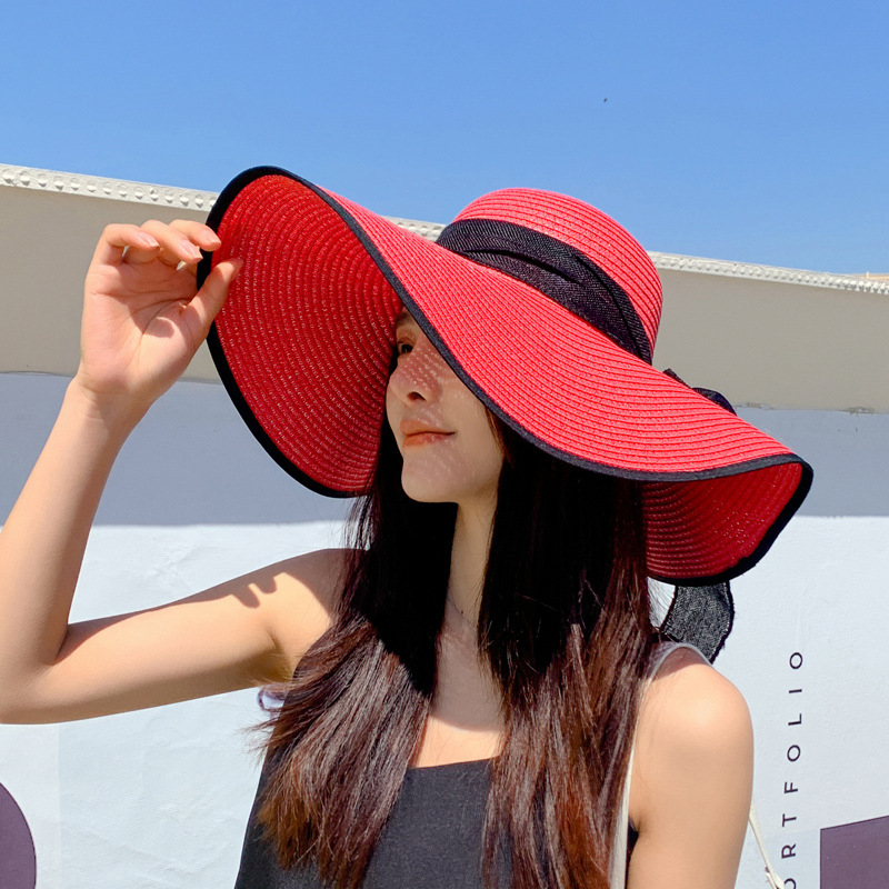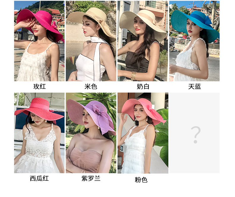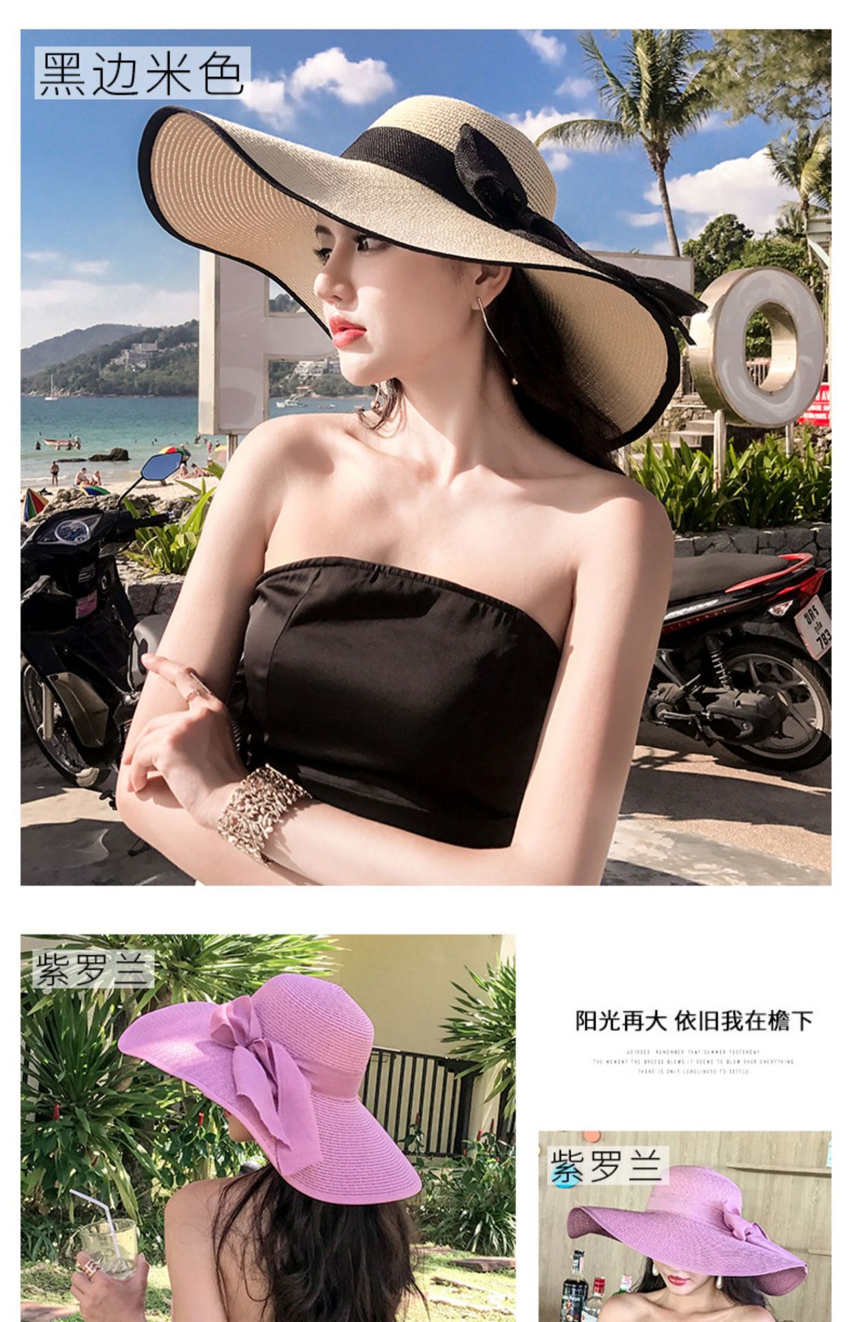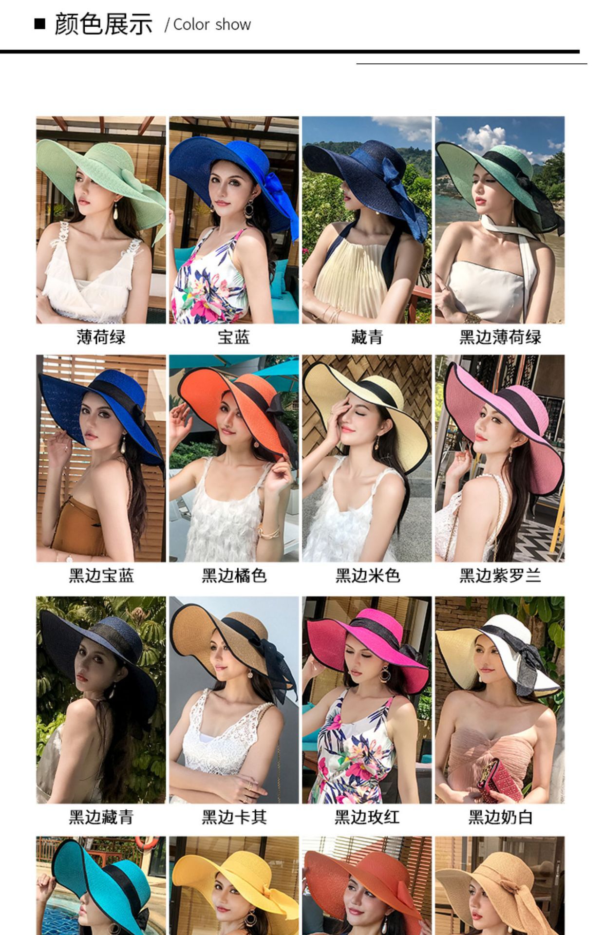 防晒草帽女可折叠沙滩帽女夏大沿帽遮阳帽海滩度假旅游太阳帽子