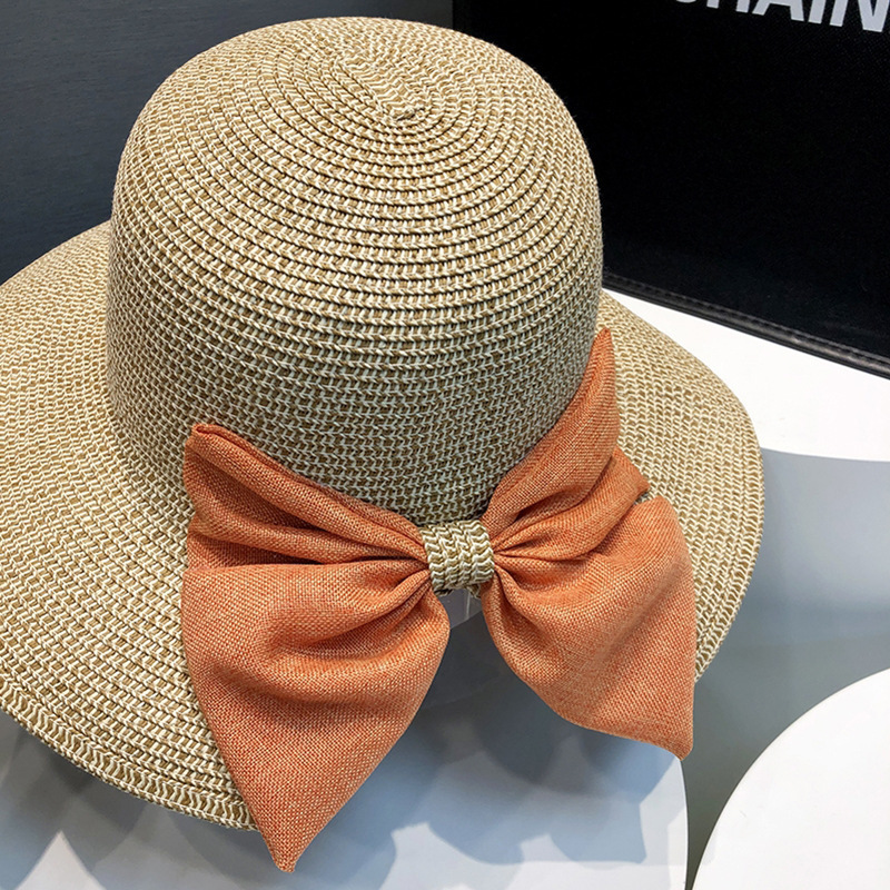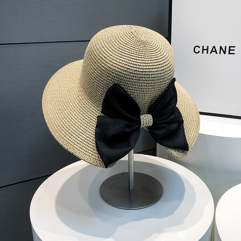 草帽高端新款夏季防晒遮阳帽法式蝴蝶结气质沙滩出游太阳帽潮批发