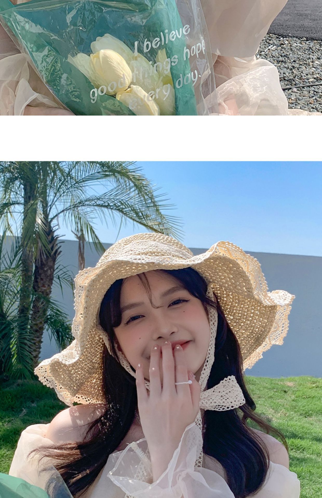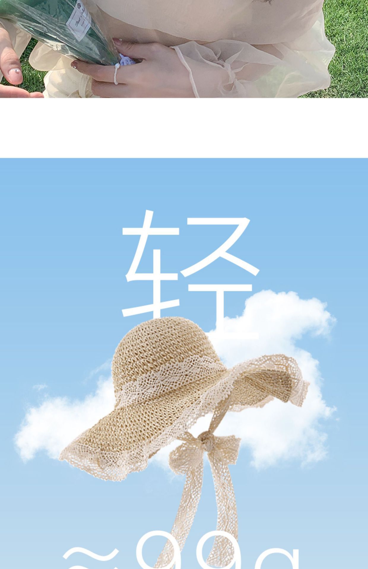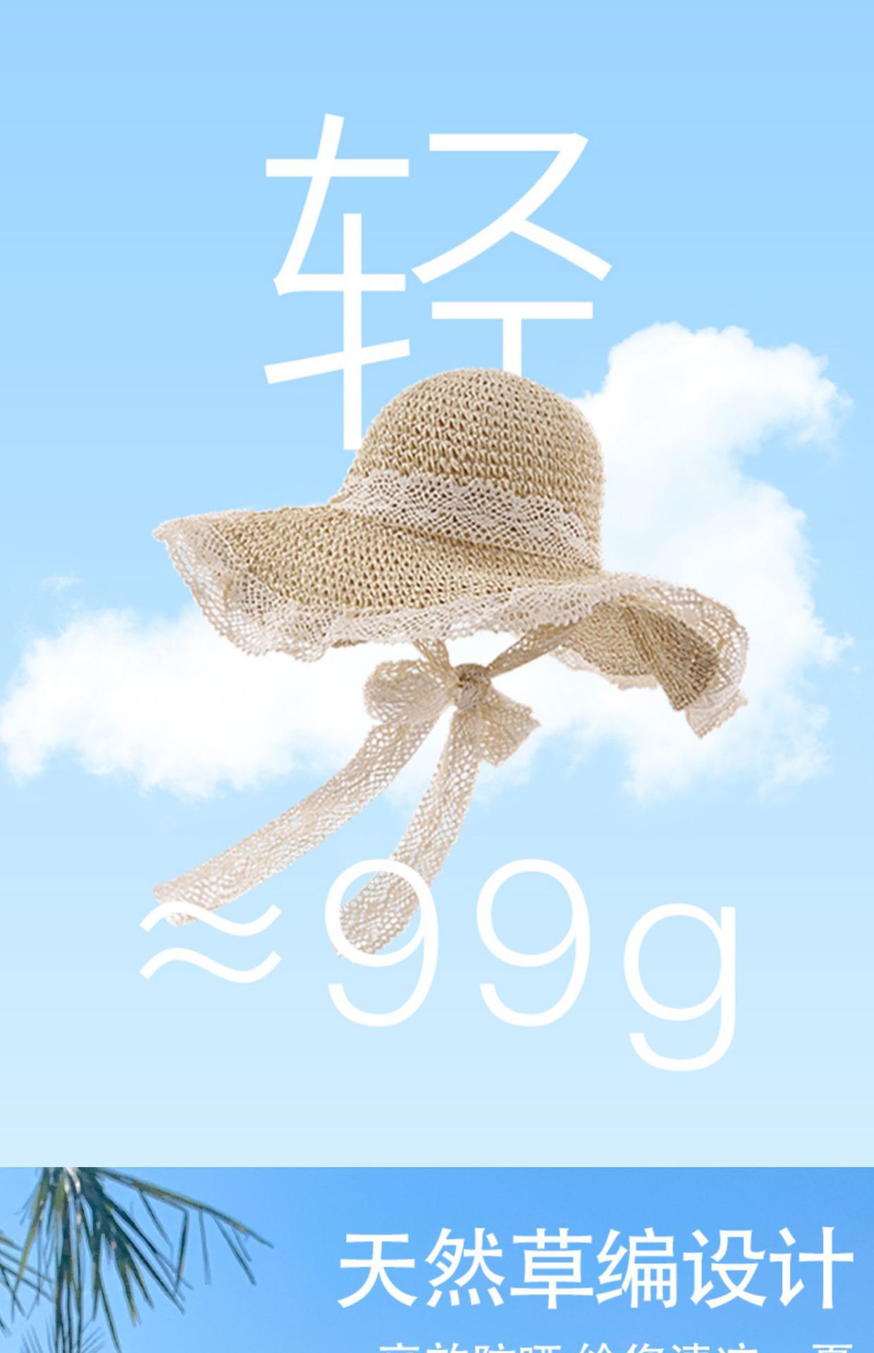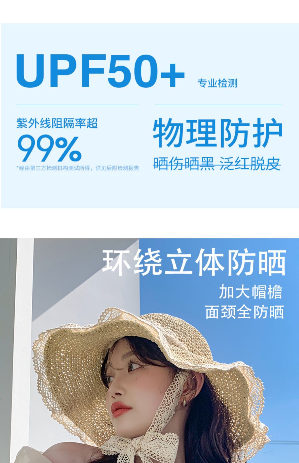 草帽女夏季度假海边沙滩防晒太阳帽日系ins风蕾丝边大帽檐显脸小
