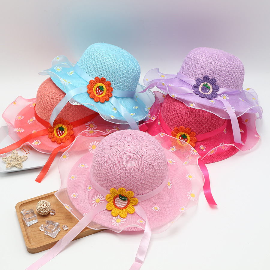 儿童草帽女童公主户外出游小孩海边防紫外线太阳遮阳帽宝宝防晒帽
