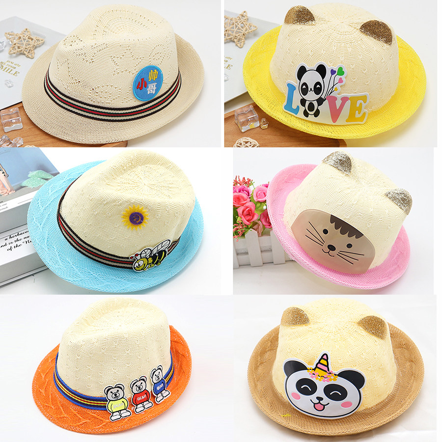 儿童草帽韩版潮户外遮阳防晒男女童太阳帽宝宝帽子小孩沙滩凉帽