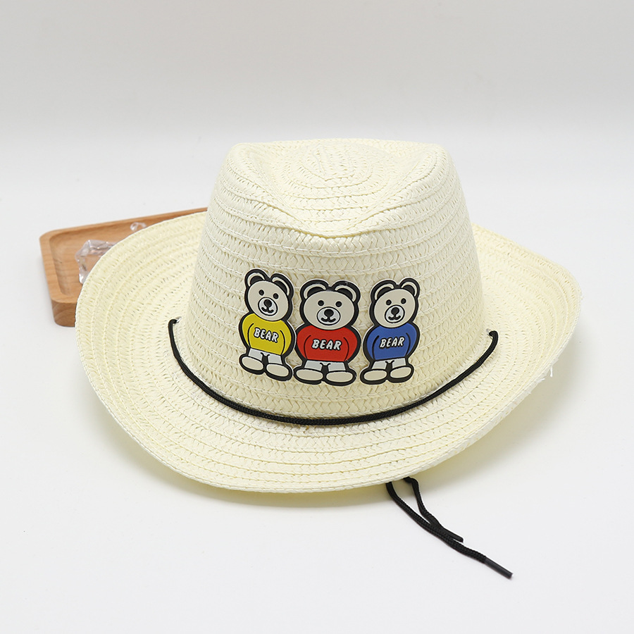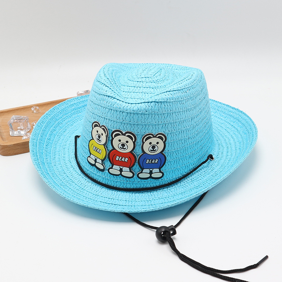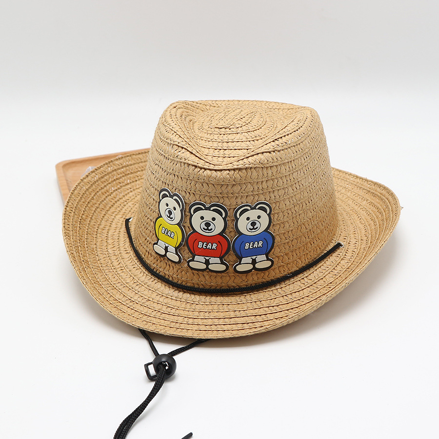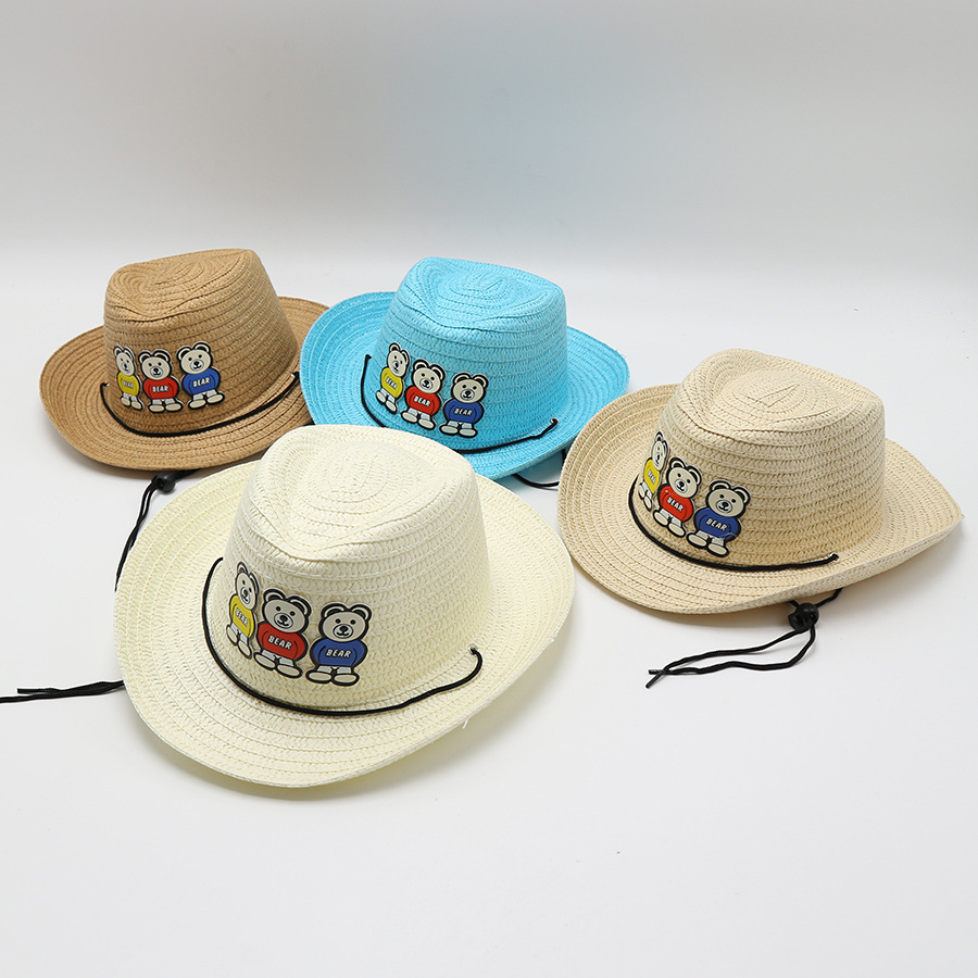 儿童草帽男孩可爱卡通小孩宝宝夏季遮阳防晒爵士帽礼帽太阳帽凉帽