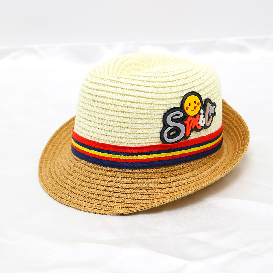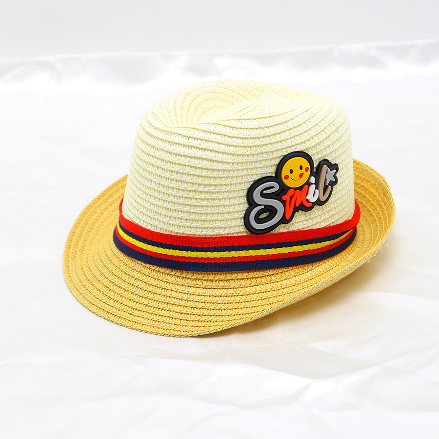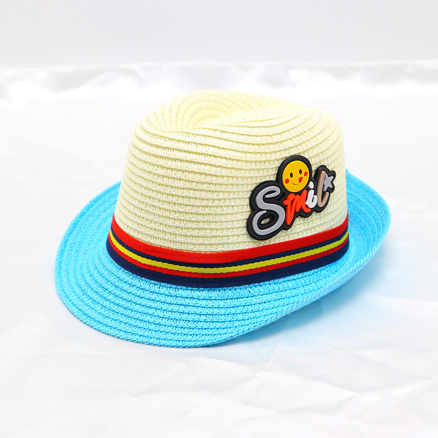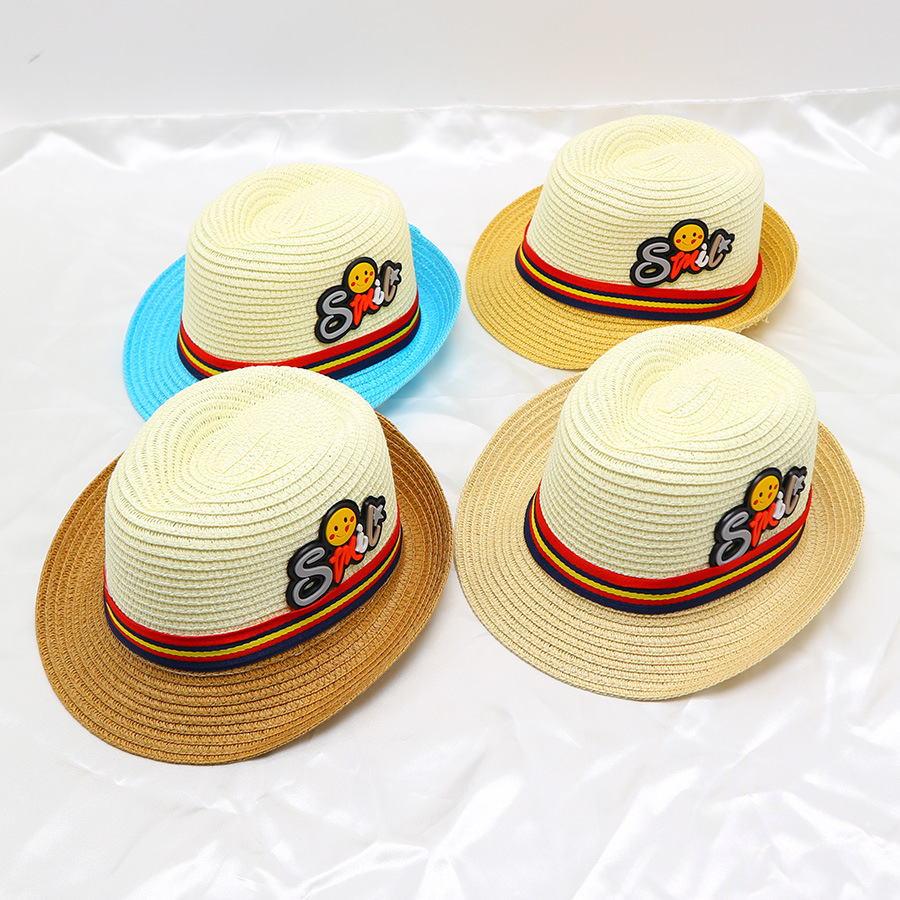 儿童草帽夏天男童沙滩帽遮阳防晒女孩卡通出游爵士帽礼帽凉帽批发