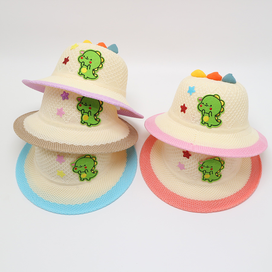 儿童草帽男童恐龙可爱幼儿园宝宝户外遮阳防晒出游小孩盆帽太阳帽