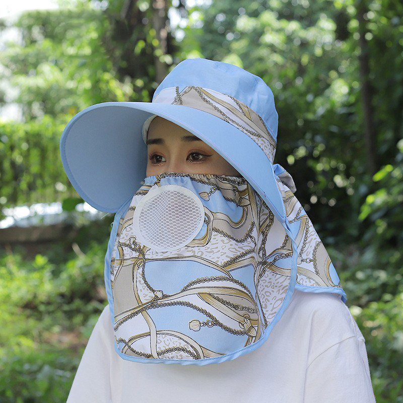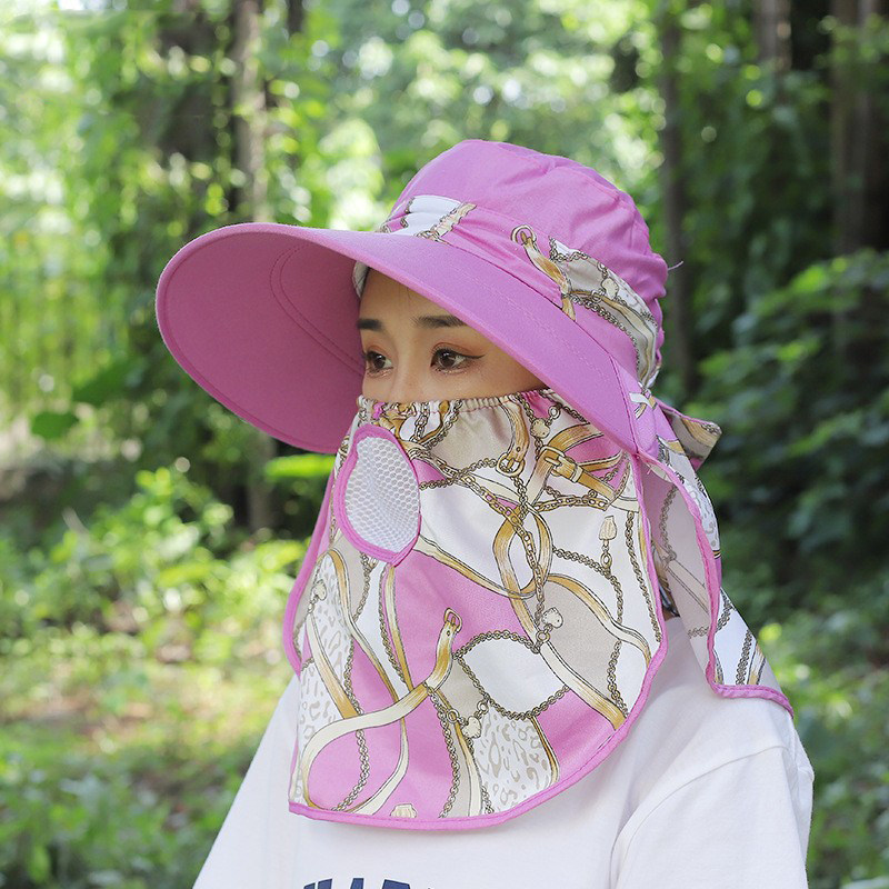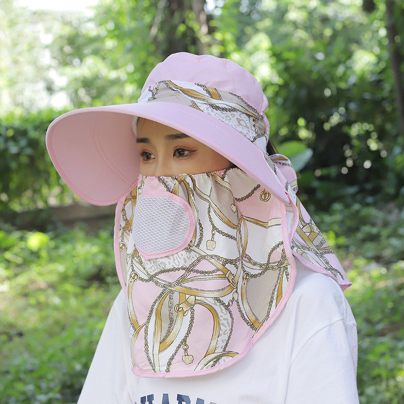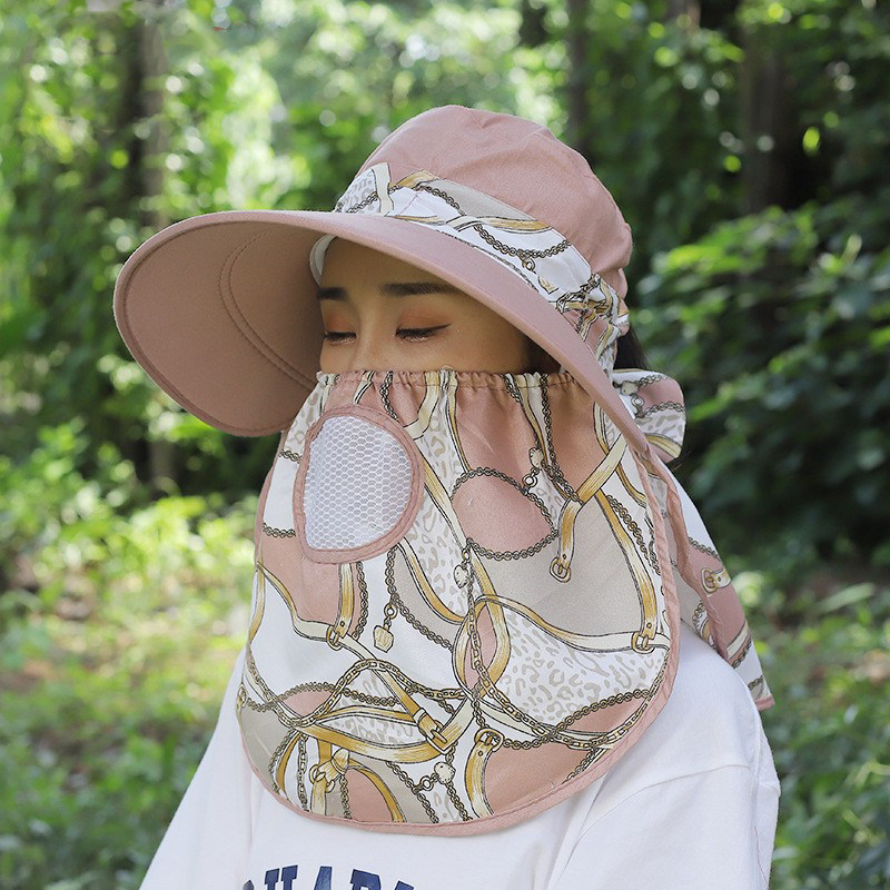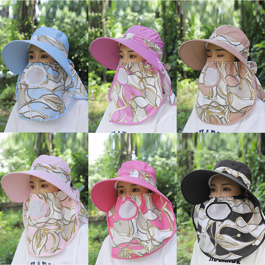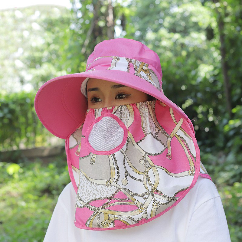 防晒帽女款透气大沿大帽檐遮阳妈妈采茶帽子骑车面罩全脸护颈脖子
