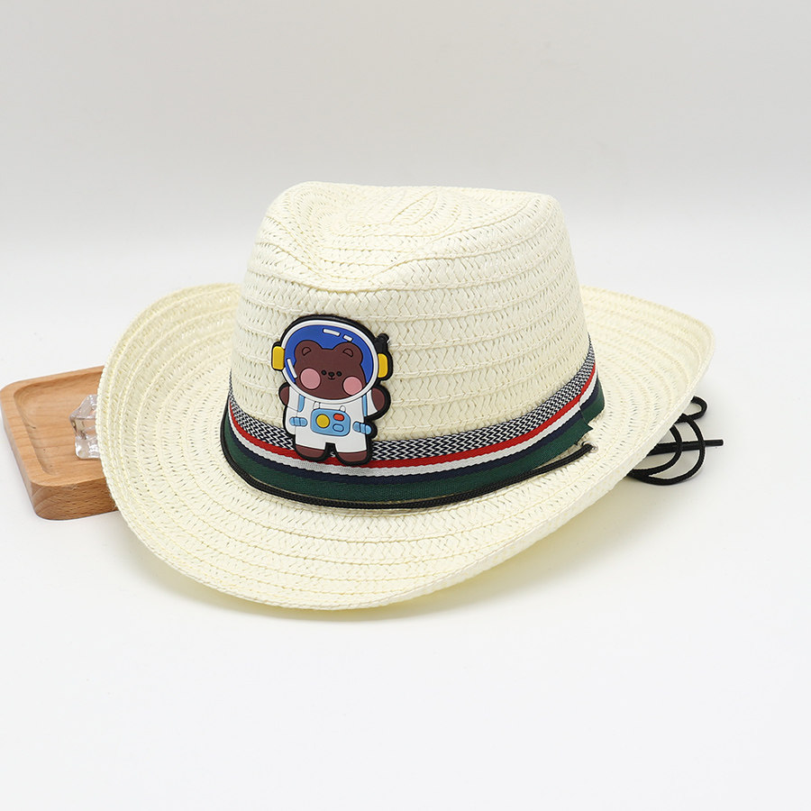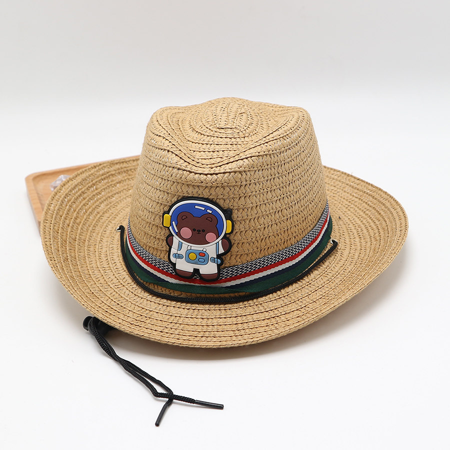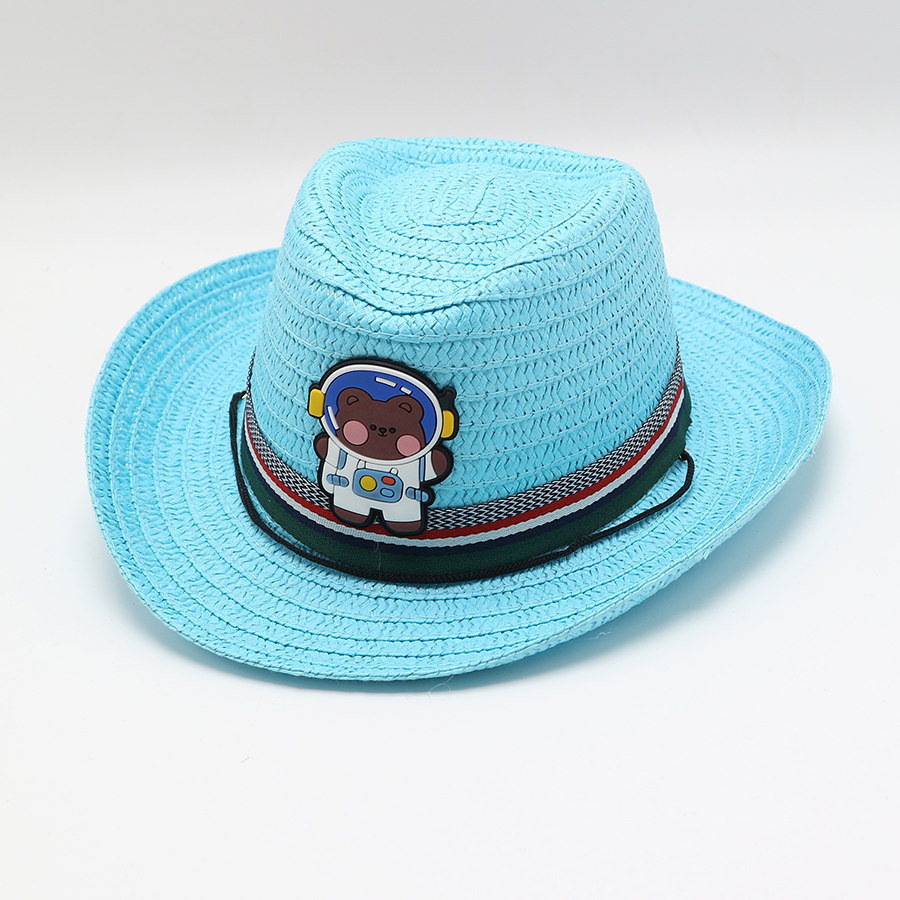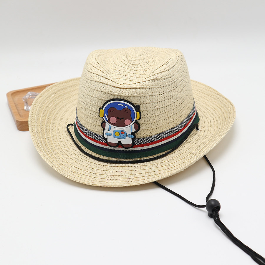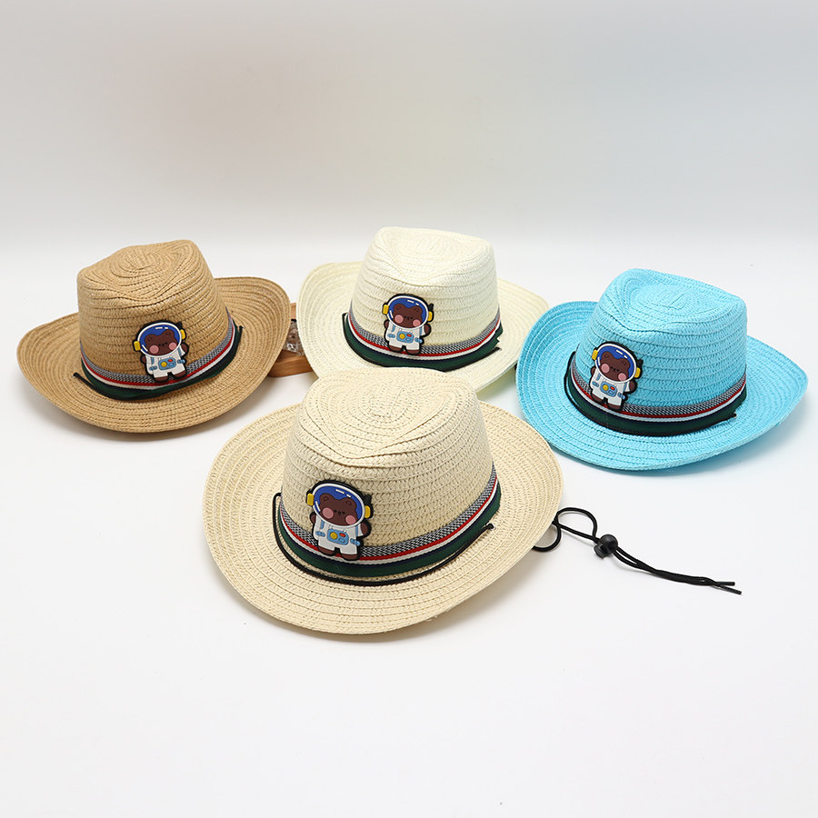 儿童草帽男童夏季遮阳防晒爵士帽礼帽小孩户外卡通出游太阳帽凉帽